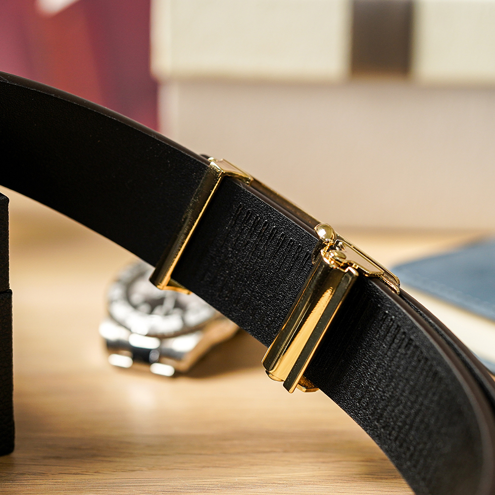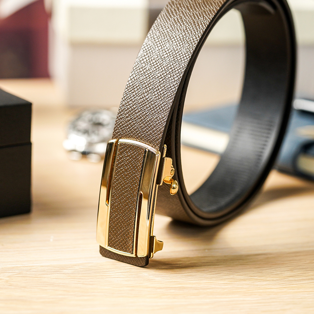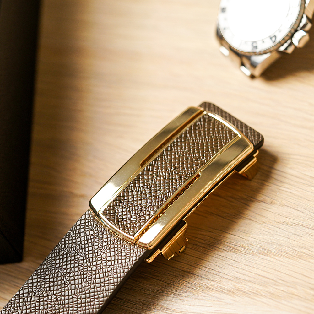 【FREED】手掌紋商務真皮自動皮帶- 金棕