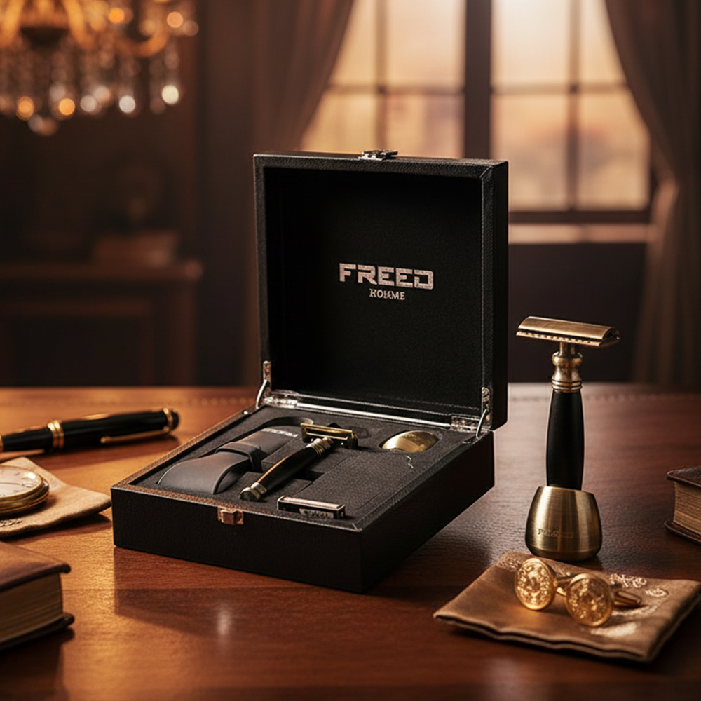 古銅系列尊爵四件組雙刃式刮鬍刀禮盒 - 極致黑