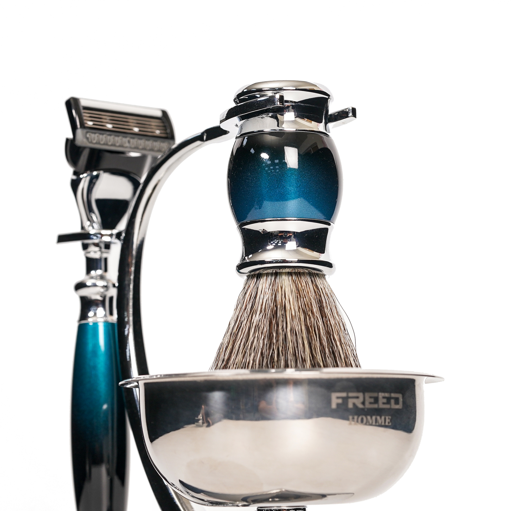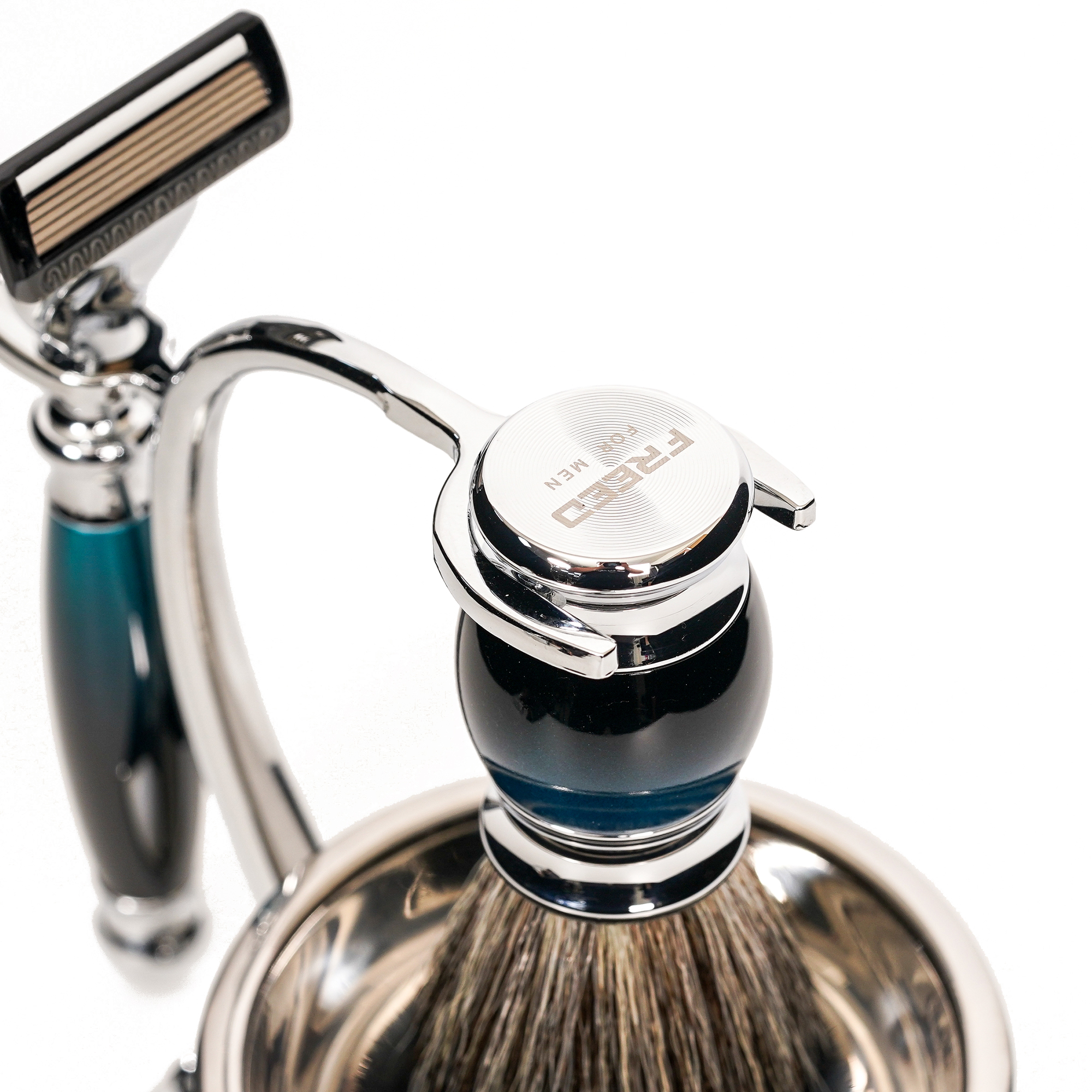 採用豪華車品牌鍍鉻工藝與鋁合金材質,完美呈現男人品味的刀具,刀片採用歐洲鋼材製作而成,堅韌且鋒利的刀片使得刮鬍非常的輕鬆俐落,搭配安全裝置完美服貼肌膚角度讓刮鬍過程大幅降低受傷與鬍子拉扯的機率,全金屬材質刀身,完美的重量配比,手感操控性極佳,讓男人專屬的儀式感為您開啟每一天。