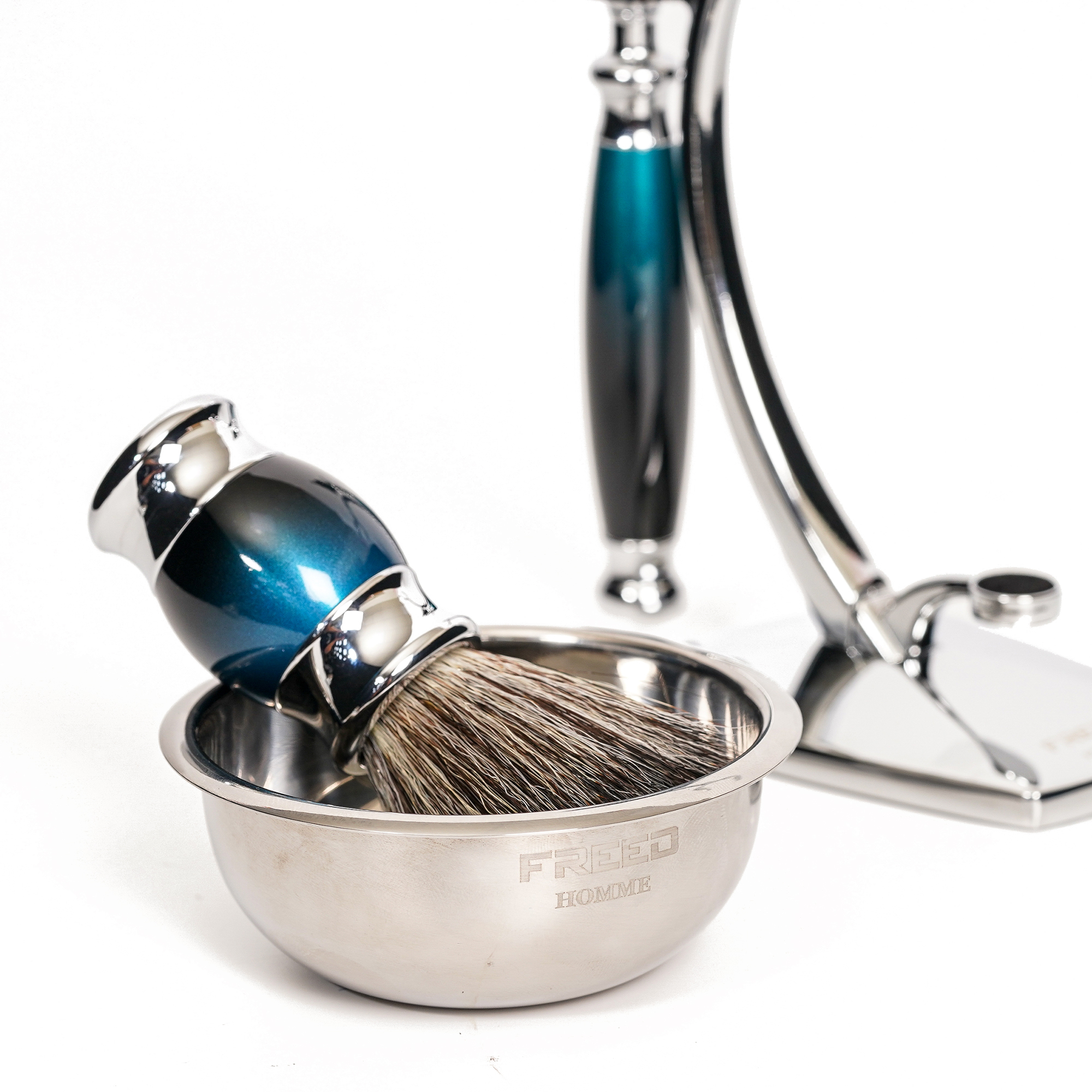 將男人所有修容工具匯集成為一件藝術擺設品而生,合金材質搭配完美設計比例,無論動與不動都非常型,底部設計搭配磁鐵,能夠吸住鬍鬚碗避免掉落 ,將英式輕奢的態度融入每一天生活裡,重新詮釋刮鬍與品味的細節,將設計與工藝的美感再一次提升,