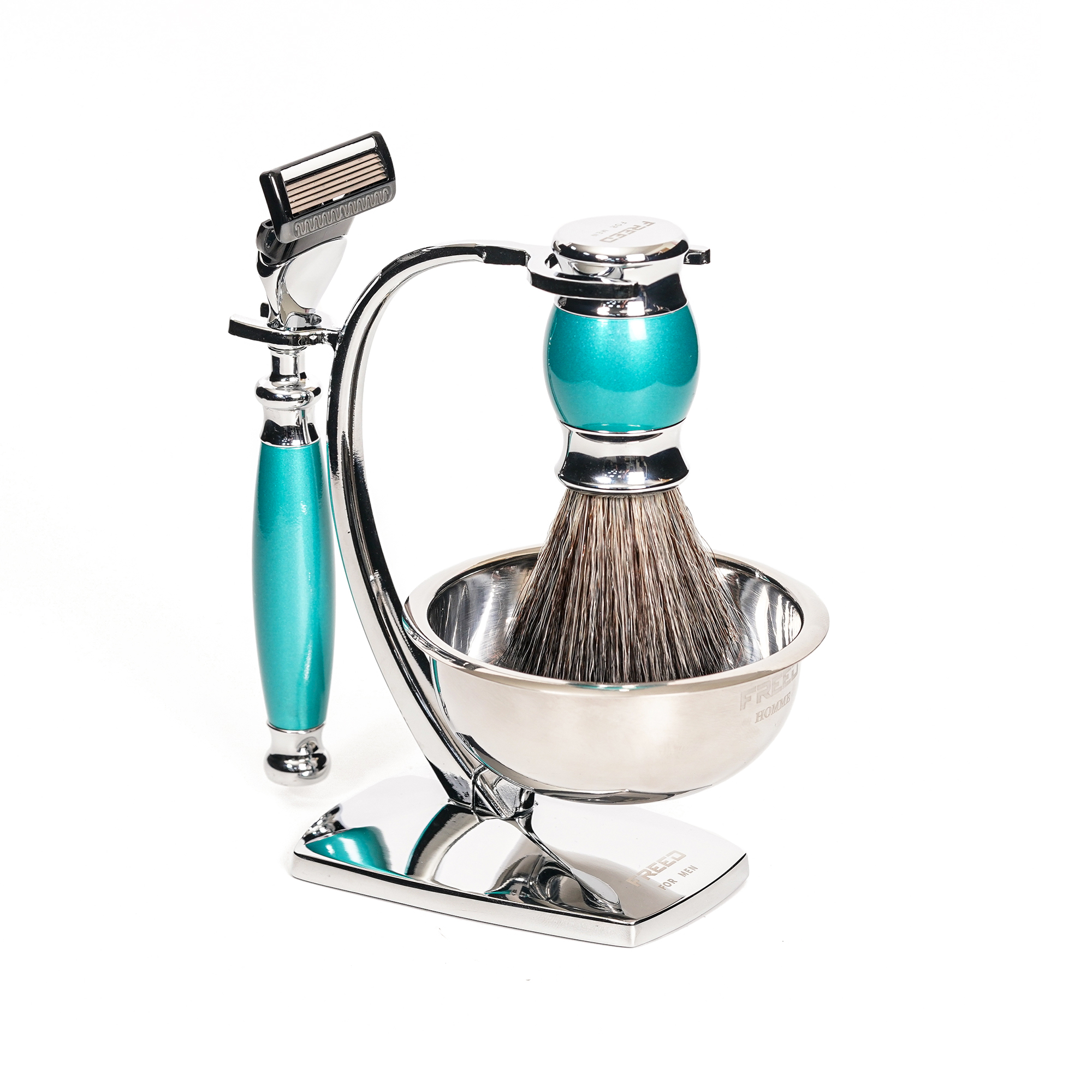 採用豪華車品牌鍍鉻工藝與鋁合金材質,完美呈現男人品味的刀具,刀片採用歐洲鋼材製作而成,堅韌且鋒利的刀片使得刮鬍非常的輕鬆俐落,搭配安全裝置完美服貼肌膚角度讓刮鬍過程大幅降低受傷與鬍子拉扯的機率,全金屬材質刀身,完美的重量配比,手感操控性極佳,讓男人專屬的儀式感為您開啟每一天。