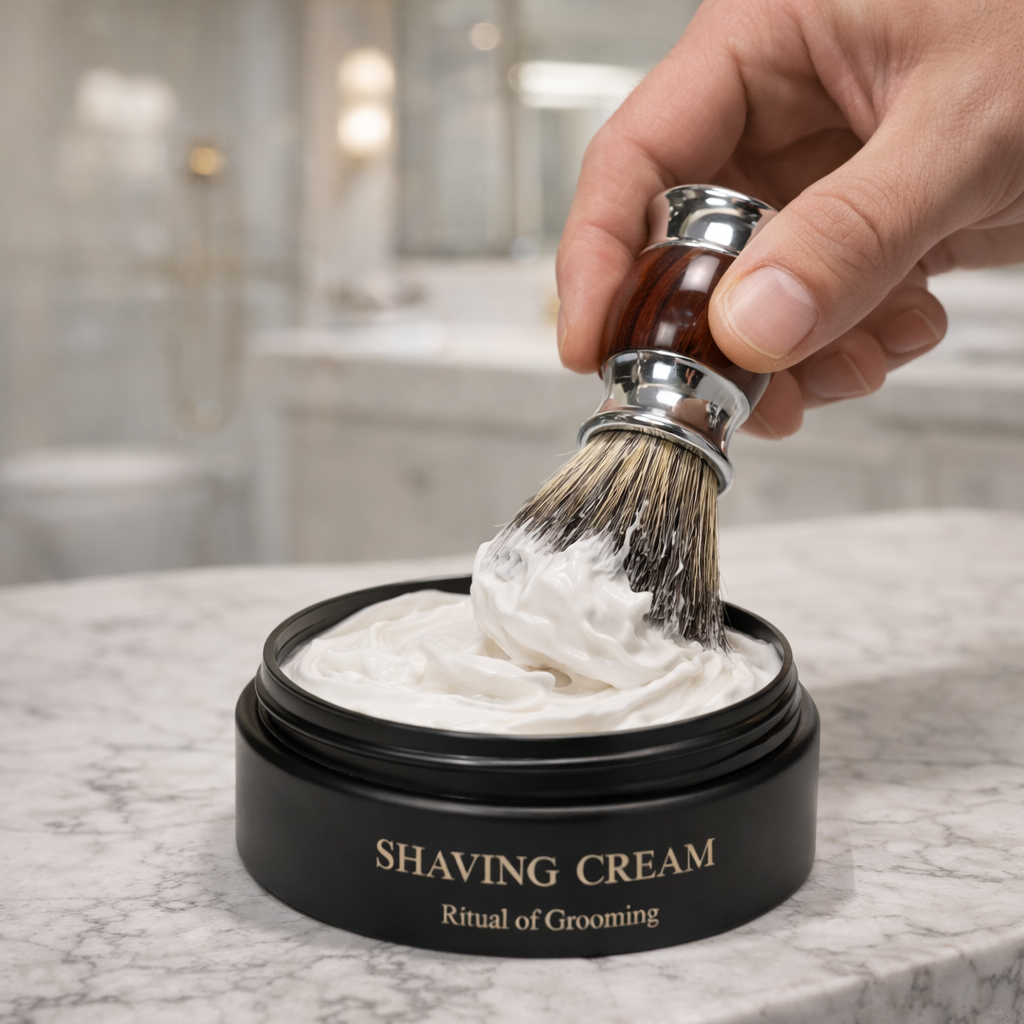 以刷具沾水起泡,讓刮鬍成為一段完整的修容程序。