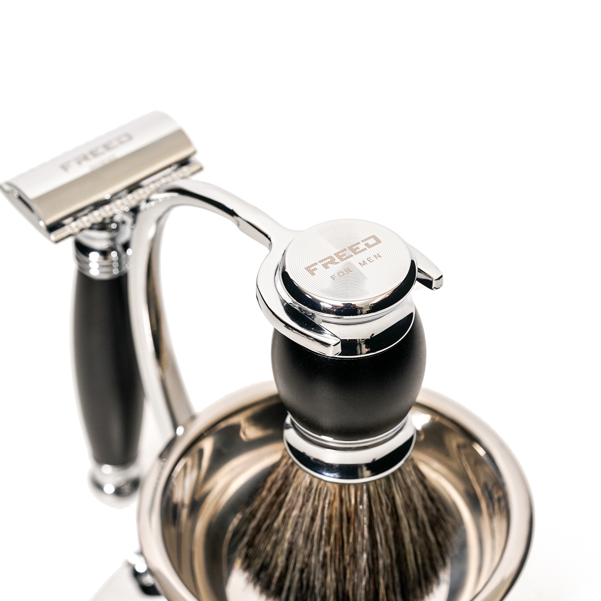採用豪華車品牌鍍鉻工藝與鋁合金材質,完美呈現男人品味的刀具,刀片採用歐洲鋼材製作而成,堅韌且鋒利的刀片使得刮鬍非常的輕鬆俐落,搭配安全裝置完美服貼肌膚角度讓刮鬍過程大幅降低受傷與鬍子拉扯的機率,全金屬材質刀身,完美的重量配比,手感操控性極佳,讓男人專屬的儀式感為您開啟每一天。