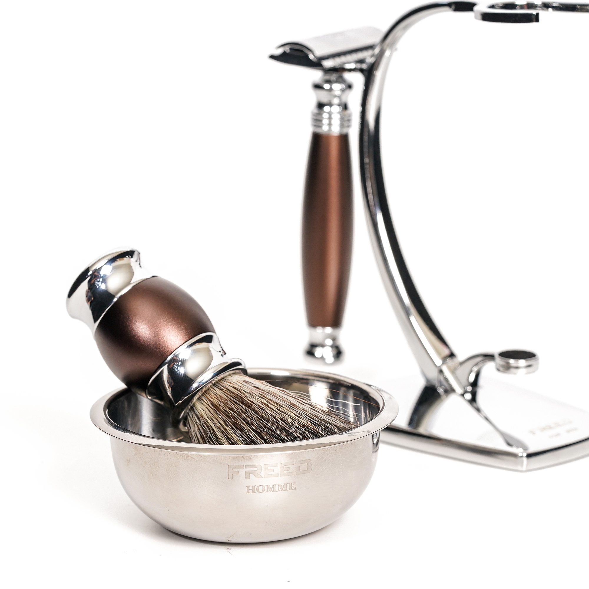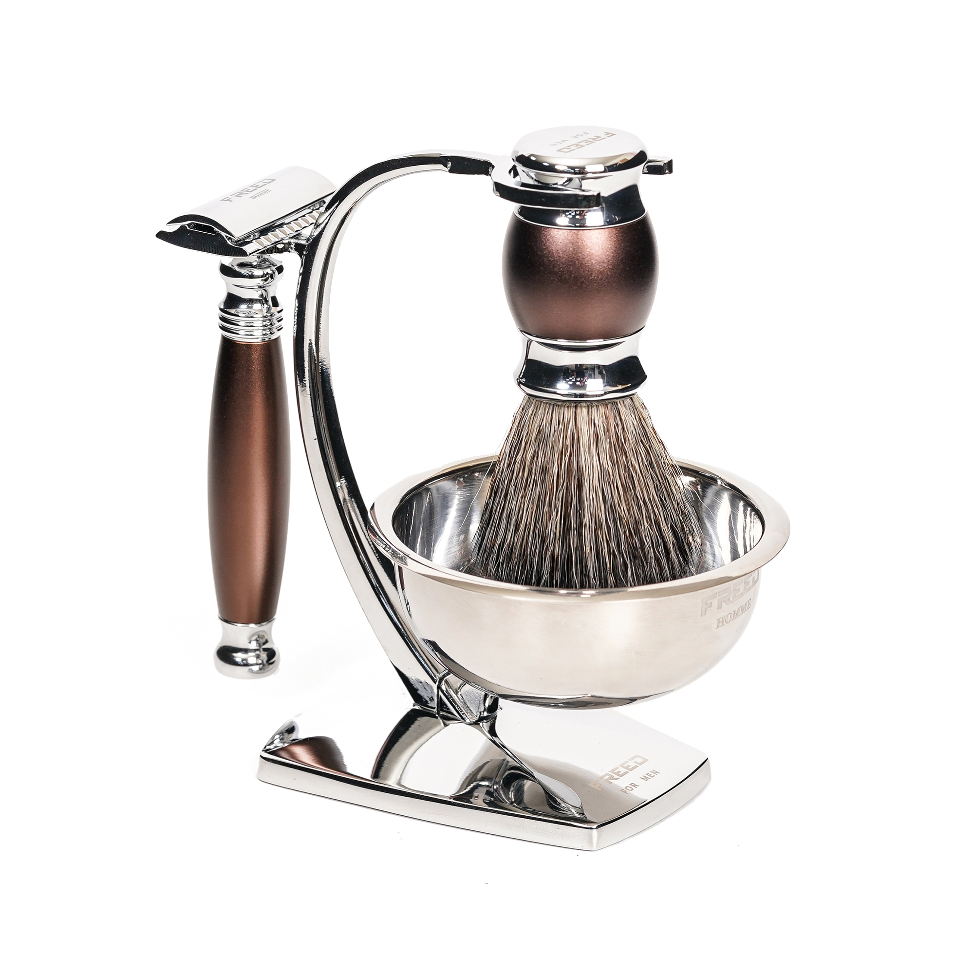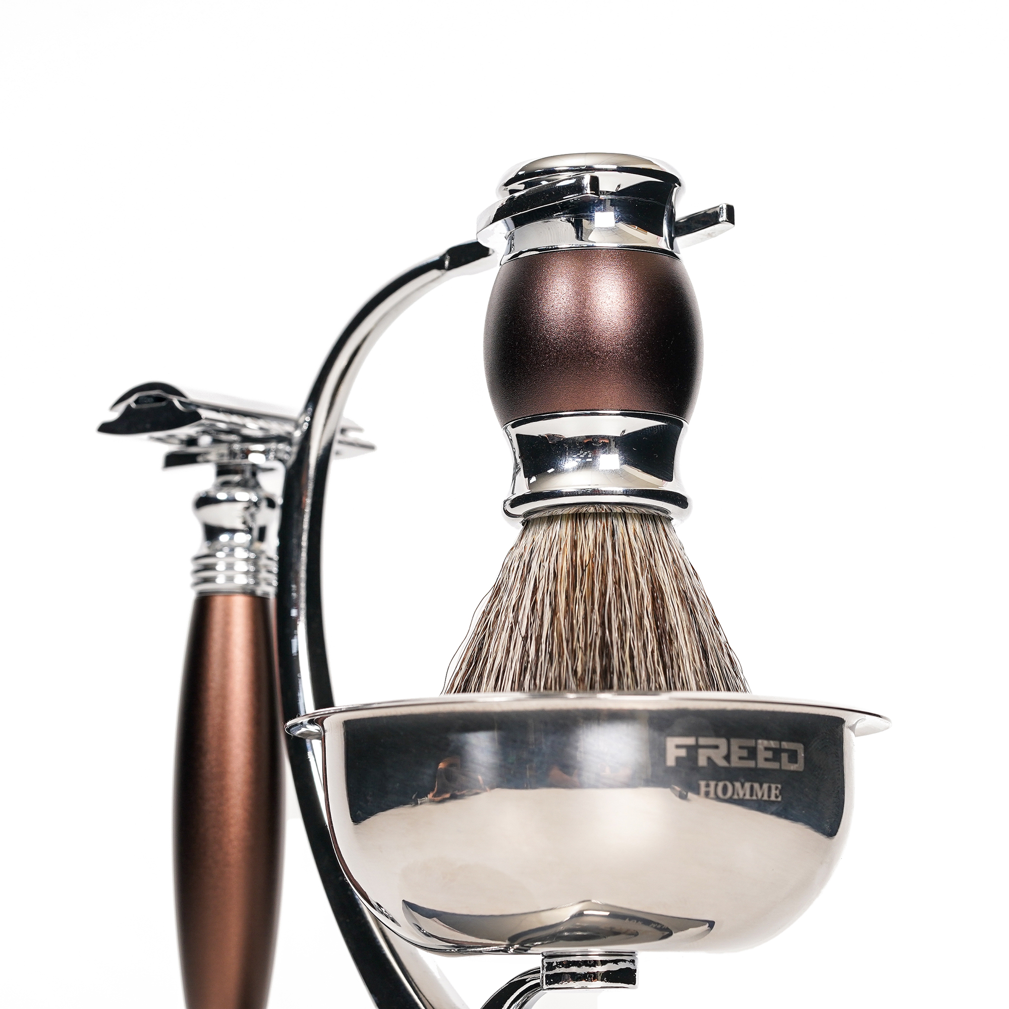 將男人所有修容工具匯集成為一件藝術擺設品而生,合金材質搭配完美設計比例,無論動與不動都非常型,底部設計搭配磁鐵,能夠吸住鬍鬚碗避免掉落 ,將英式輕奢的態度融入每一天生活裡,重新詮釋刮鬍與品味的細節,將設計與工藝的美感再一次提升,