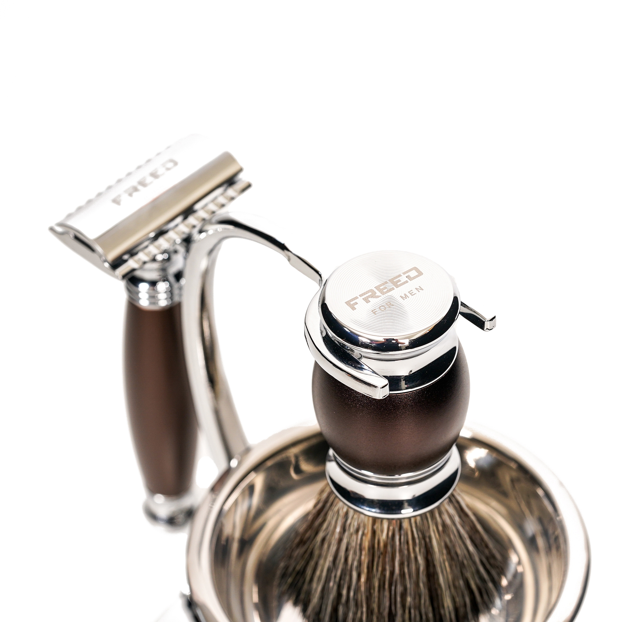 採用豪華車品牌鍍鉻工藝與鋁合金材質,完美呈現男人品味的刀具,刀片採用歐洲鋼材製作而成,堅韌且鋒利的刀片使得刮鬍非常的輕鬆俐落,搭配安全裝置完美服貼肌膚角度讓刮鬍過程大幅降低受傷與鬍子拉扯的機率,全金屬材質刀身,完美的重量配比,手感操控性極佳,讓男人專屬的儀式感為您開啟每一天。