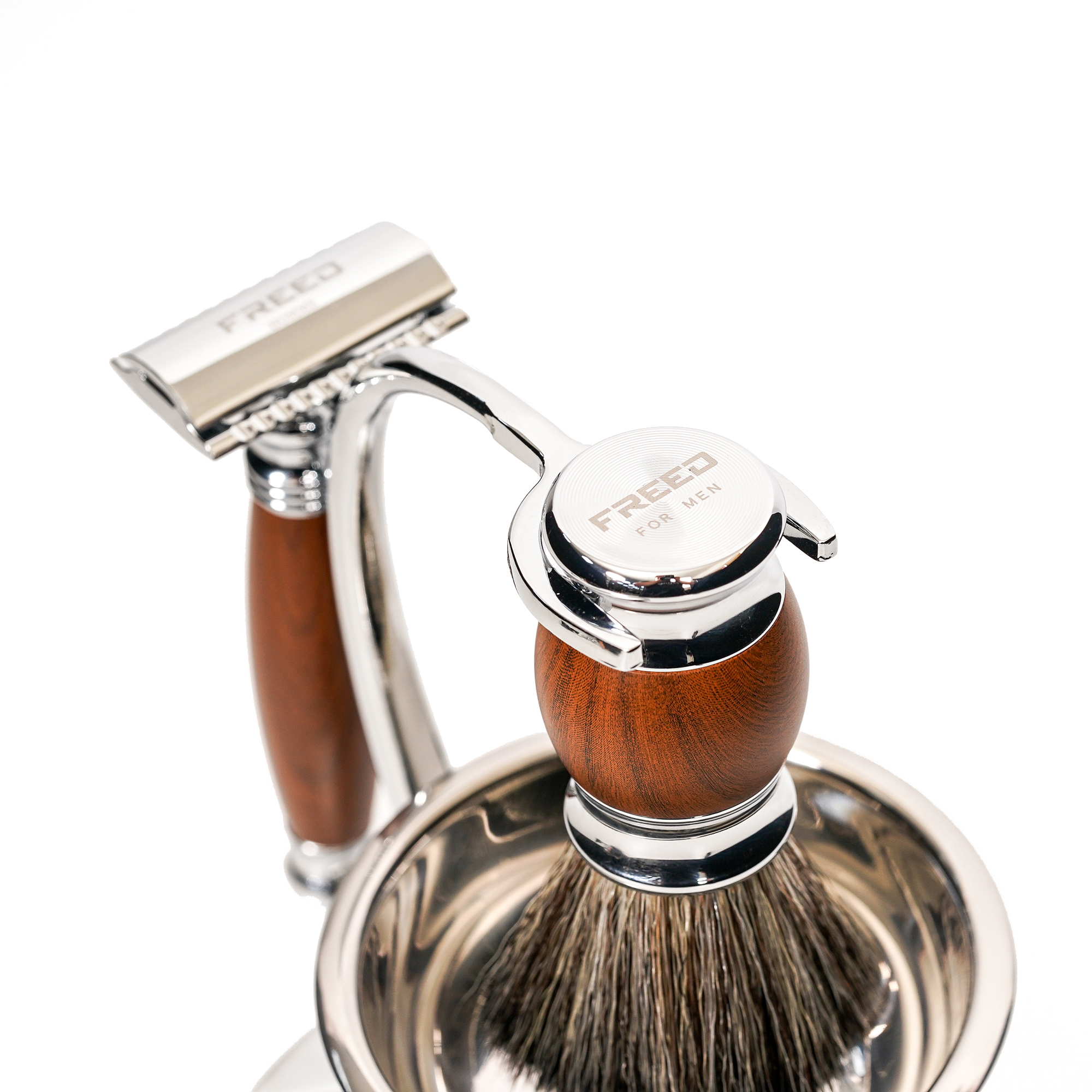 採用豪華車品牌鍍鉻工藝與鋁合金材質,完美呈現男人品味的刀具,刀片採用歐洲鋼材製作而成,堅韌且鋒利的刀片使得刮鬍非常的輕鬆俐落,搭配安全裝置完美服貼肌膚角度讓刮鬍過程大幅降低受傷與鬍子拉扯的機率,全金屬材質刀身,完美的重量配比,手感操控性極佳,讓男人專屬的儀式感為您開啟每一天。