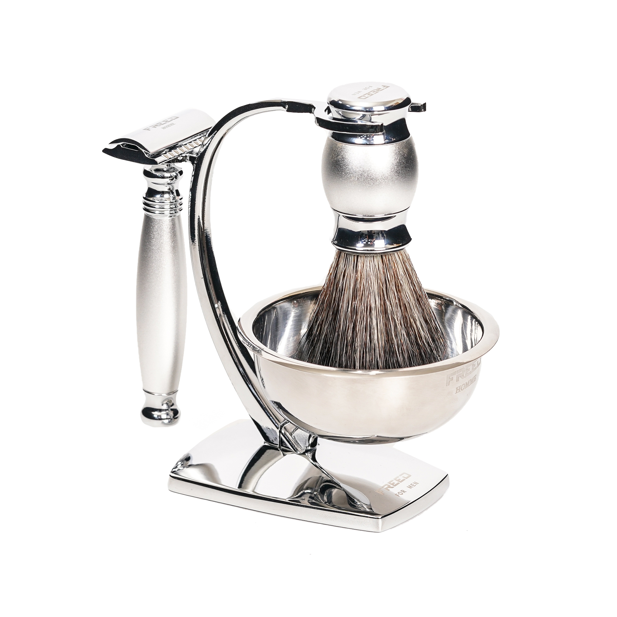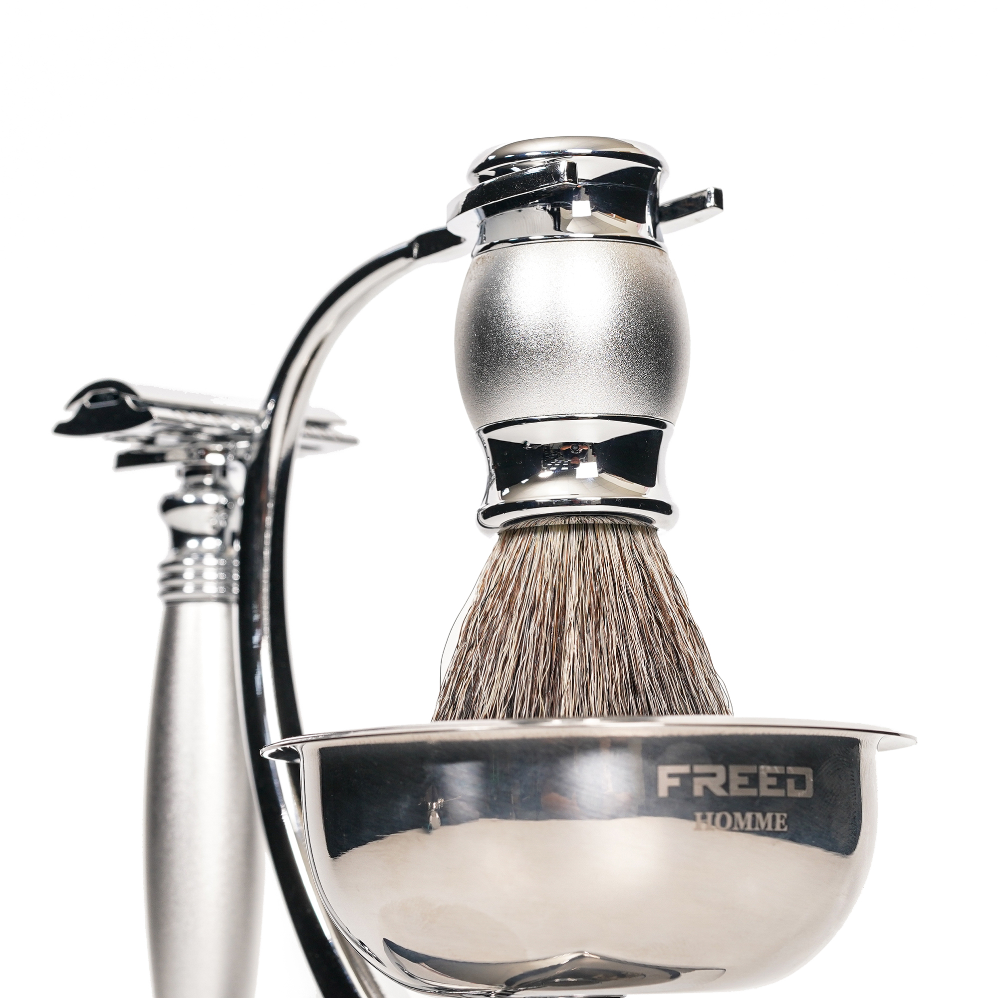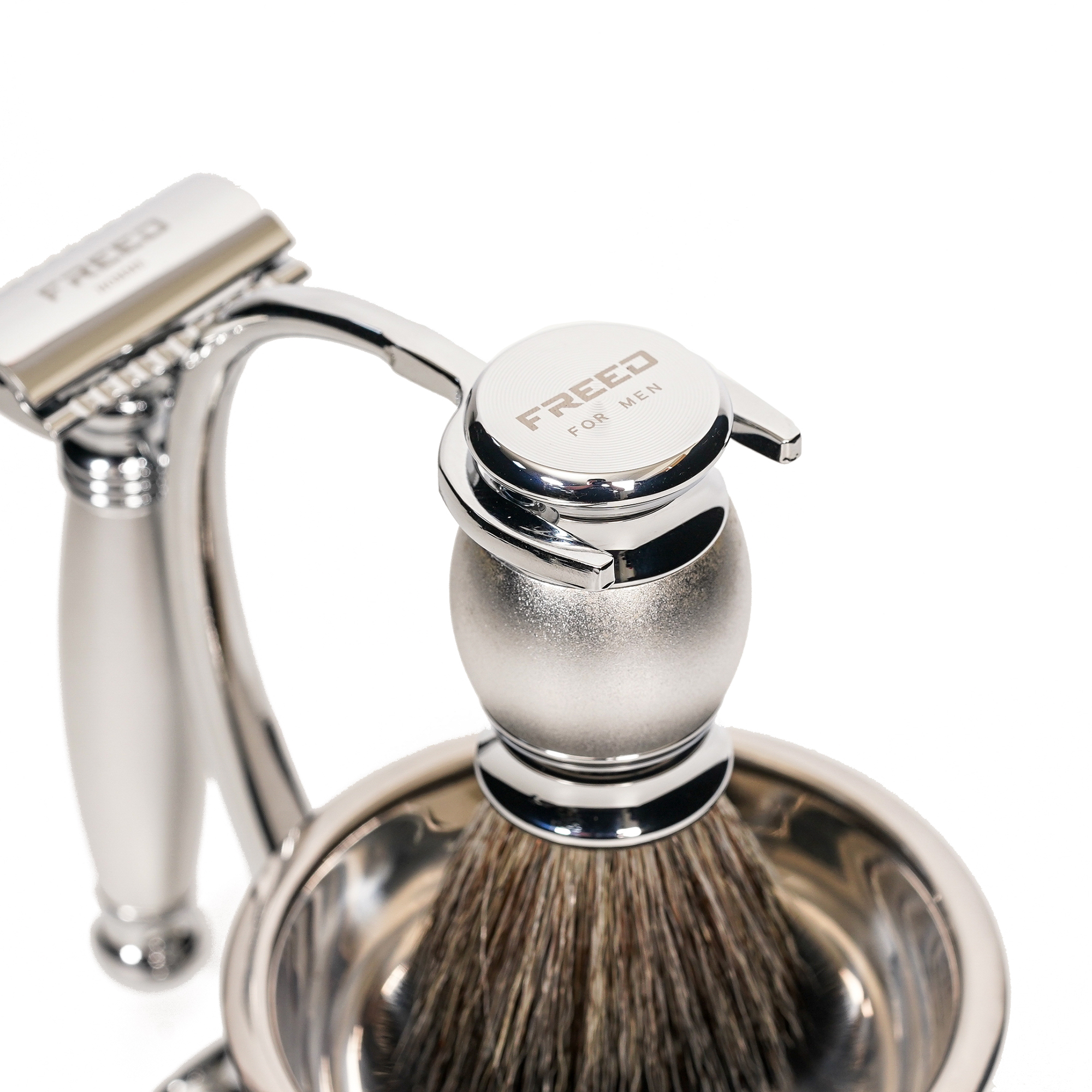 採用豪華車品牌鍍鉻工藝與鋁合金材質,完美呈現男人品味的刀具,刀片採用歐洲鋼材製作而成,堅韌且鋒利的刀片使得刮鬍非常的輕鬆俐落,搭配安全裝置完美服貼肌膚角度讓刮鬍過程大幅降低受傷與鬍子拉扯的機率,全金屬材質刀身,完美的重量配比,手感操控性極佳,讓男人專屬的儀式感為您開啟每一天。