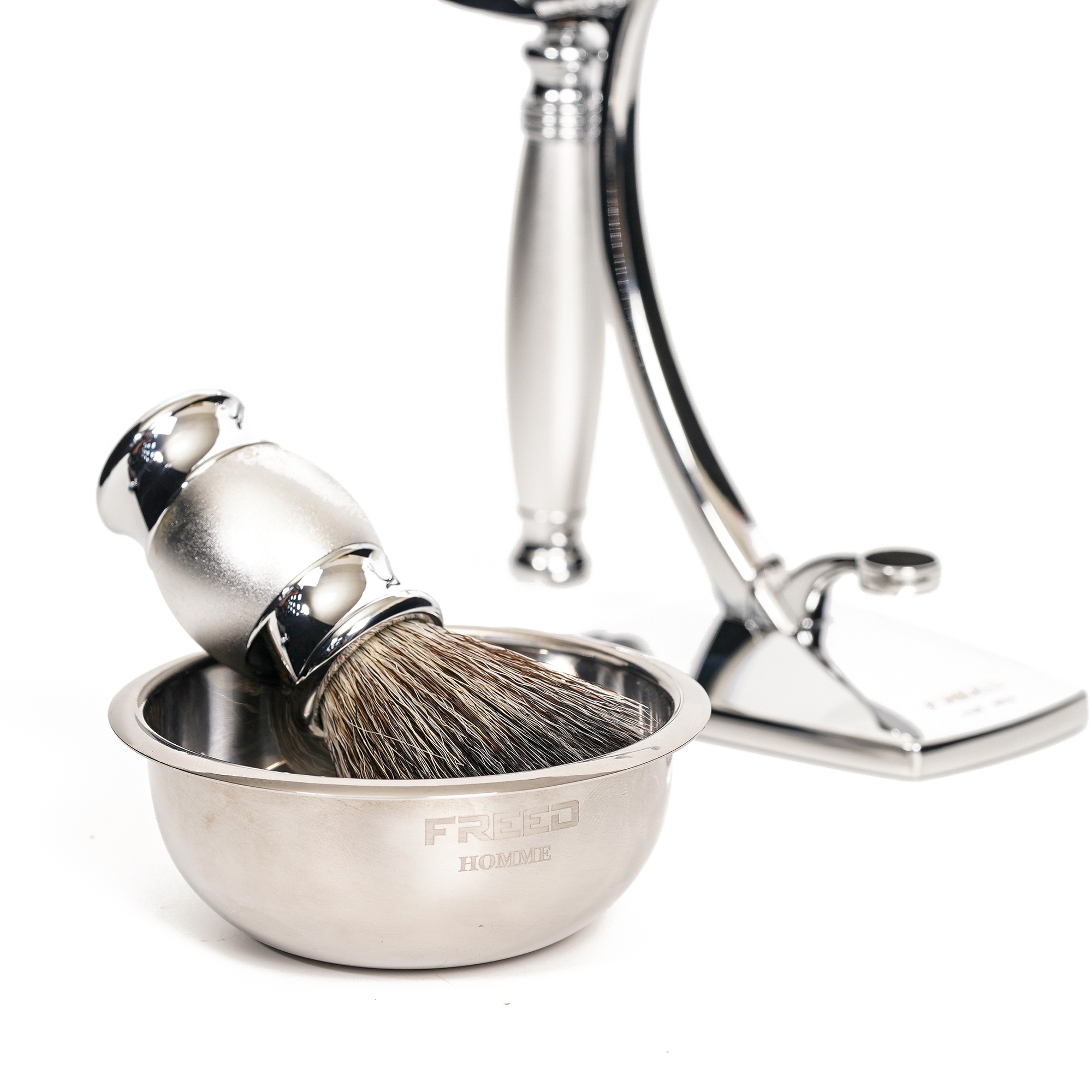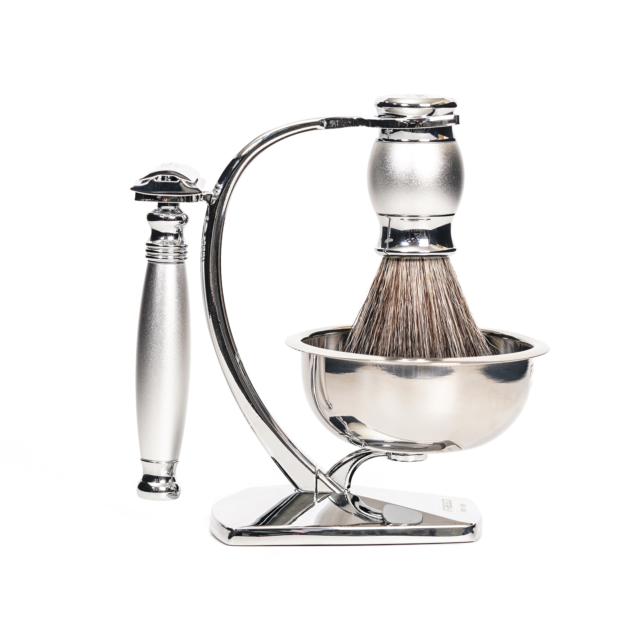 將男人所有修容工具匯集成為一件藝術擺設品而生,合金材質搭配完美設計比例,無論動與不動都非常型,底部設計搭配磁鐵,能夠吸住鬍鬚碗避免掉落 ,將英式輕奢的態度融入每一天生活裡,重新詮釋刮鬍與品味的細節,將設計與工藝的美感再一次提升,