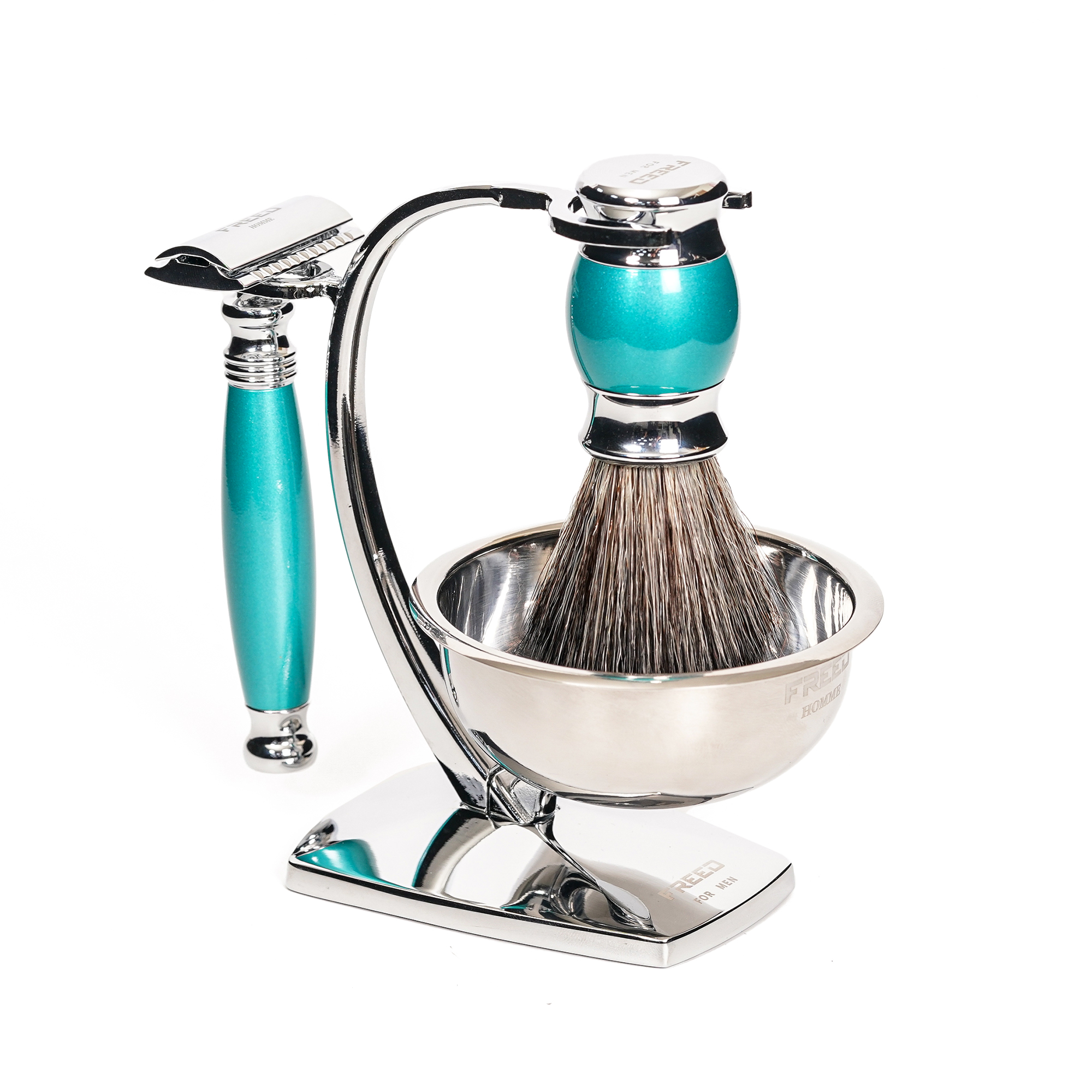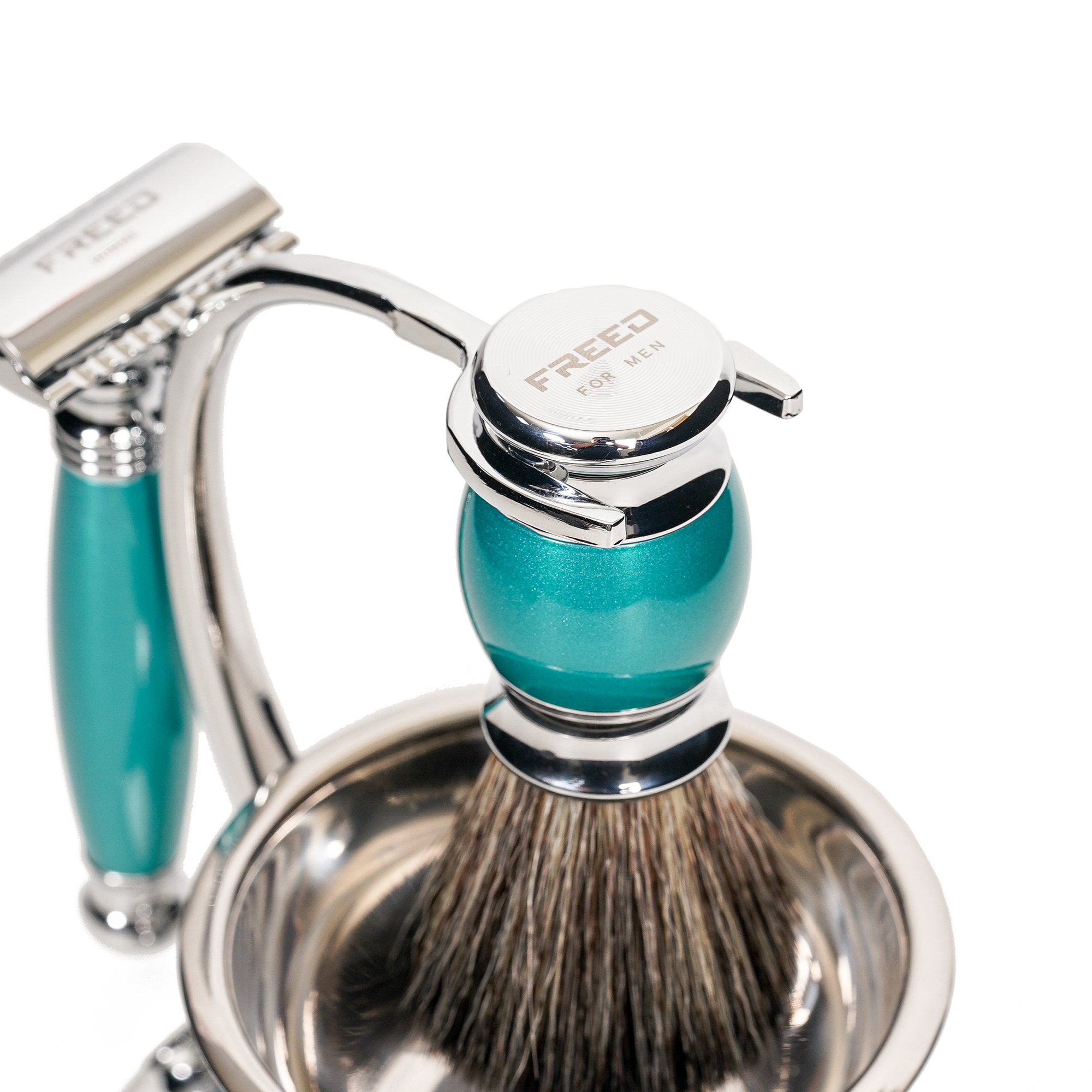 採用豪華車品牌鍍鉻工藝與鋁合金材質,完美呈現男人品味的刀具,刀片採用歐洲鋼材製作而成,堅韌且鋒利的刀片使得刮鬍非常的輕鬆俐落,搭配安全裝置完美服貼肌膚角度讓刮鬍過程大幅降低受傷與鬍子拉扯的機率,全金屬材質刀身,完美的重量配比,手感操控性極佳,讓男人專屬的儀式感為您開啟每一天。