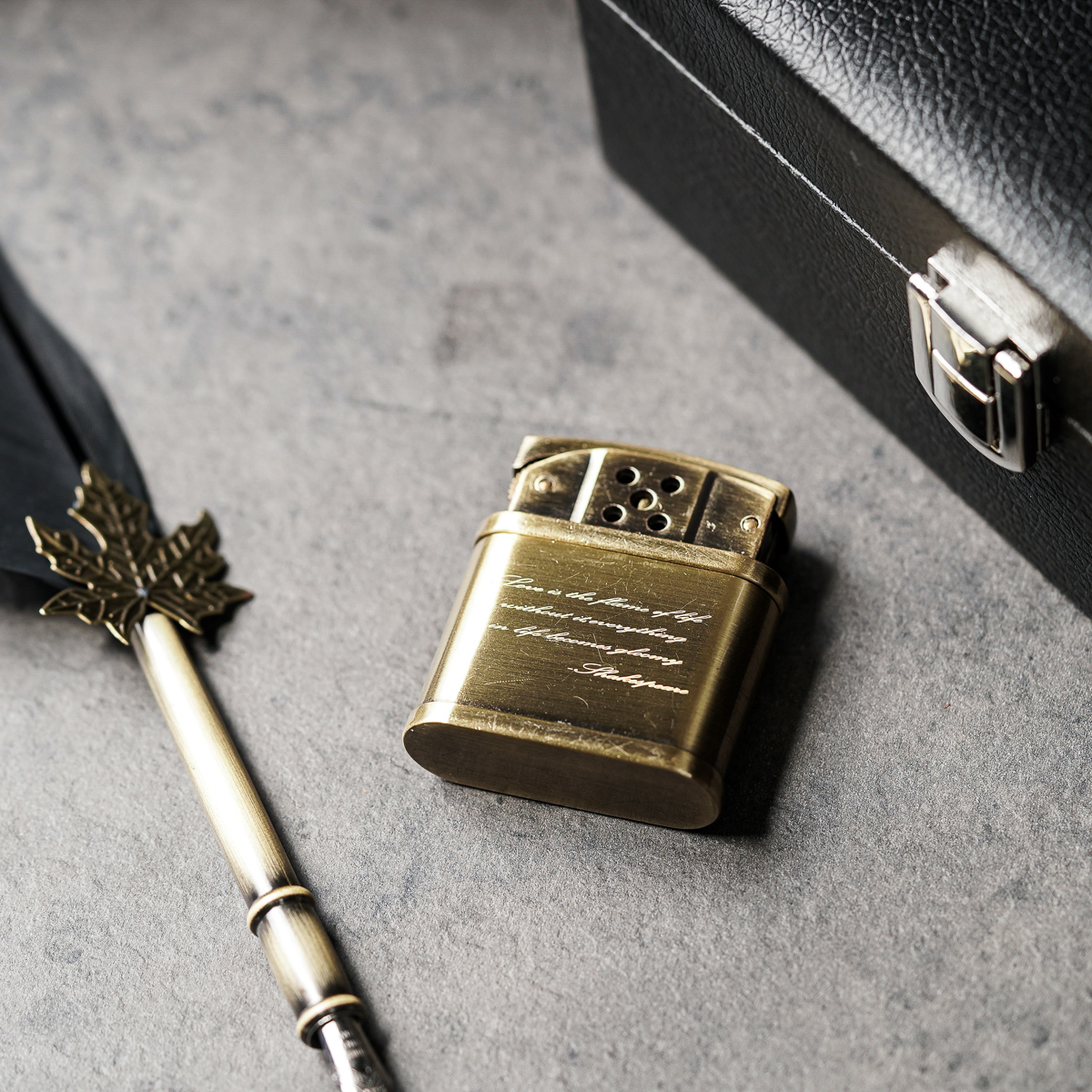 每個細節都經過精心雕琢,易於操作只需一個輕輕的轉動砂輪,即可瞬間點燃火源,透過煤油能提供源源不斷的火源,同樣也具備可客製化刻字的服務,較特別的是不限制行數,可大範圍雕刻文字,是一款不管自用或者送禮都非常合適的禮品