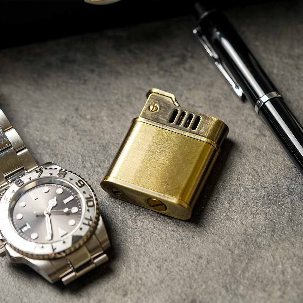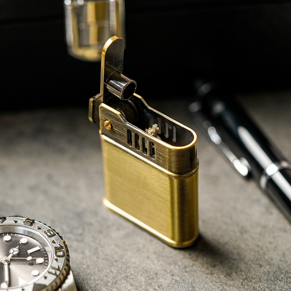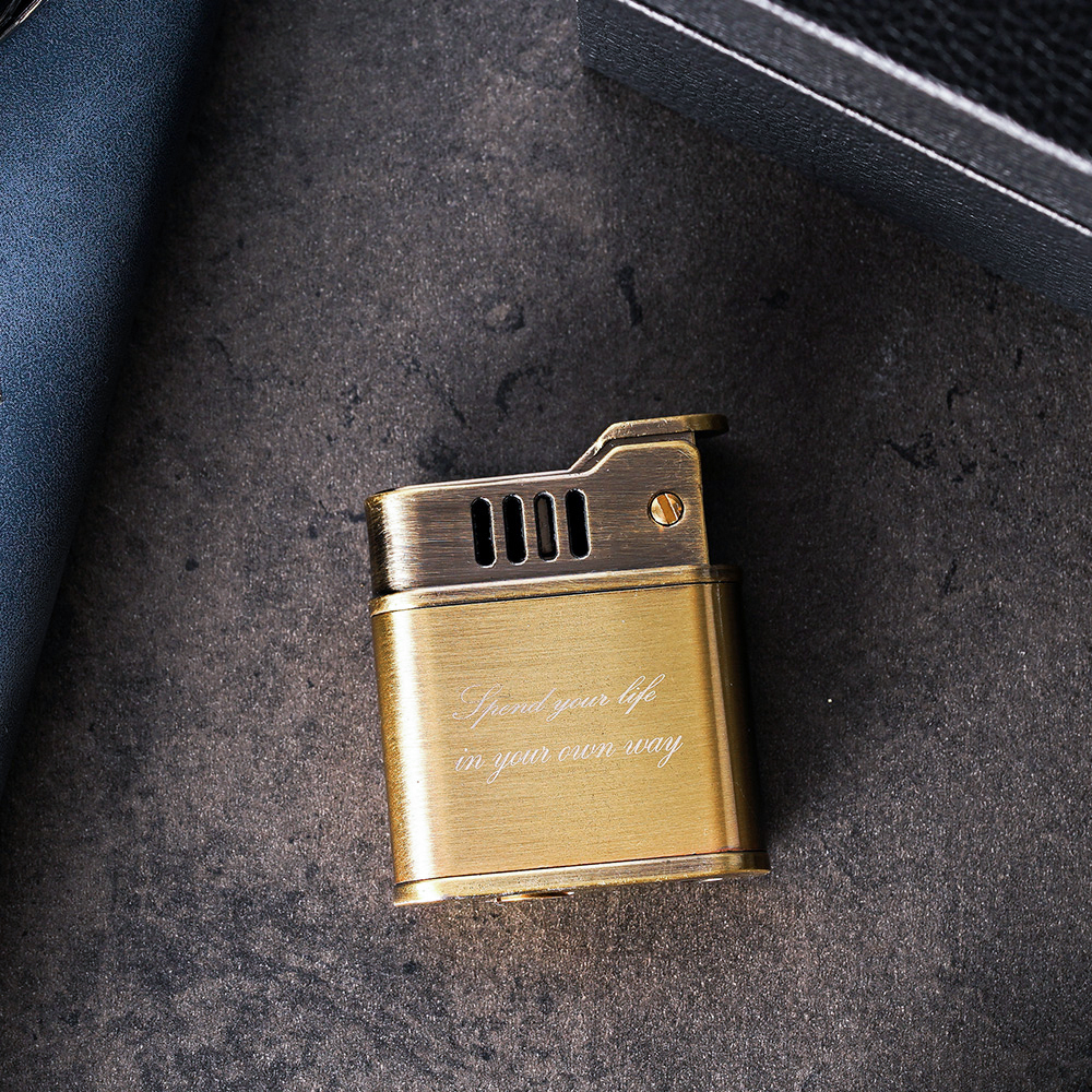 完美融合了復古元素,讓您乘坐時光機回到七零年代感受老紳士的情懷與時尚風格, 使用優質的黃銅材質製作,確保產品的耐用性和精緻感。每個細節都經過精心雕琢,易於操作只需一個輕輕的轉動砂輪,即可瞬間點燃火源,透過煤油能提供源源不斷的火源,同樣也具備可客製化刻字的服務,較特別的是不限制行數,可大範圍雕刻文字,是一款不管自用或者送禮都非常合適的禮品