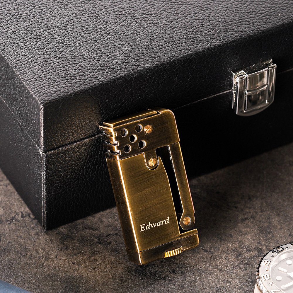 完美融合了復古元素,讓您乘坐時光機回到七零年代感受老紳士的情懷與時尚風格, 使用優質的銅材質製作,確保產品的耐用性和精緻感。每個細節都經過精心雕琢,易於操作只需一個輕輕的轉動砂輪,即可瞬間點燃火源,透過煤油能提供源源不斷的火源,同樣也具備可客製化刻字的服務,較特別的是不限制行數,可大範圍雕刻文字,是一款不管自用或者送禮都非常合適的禮品