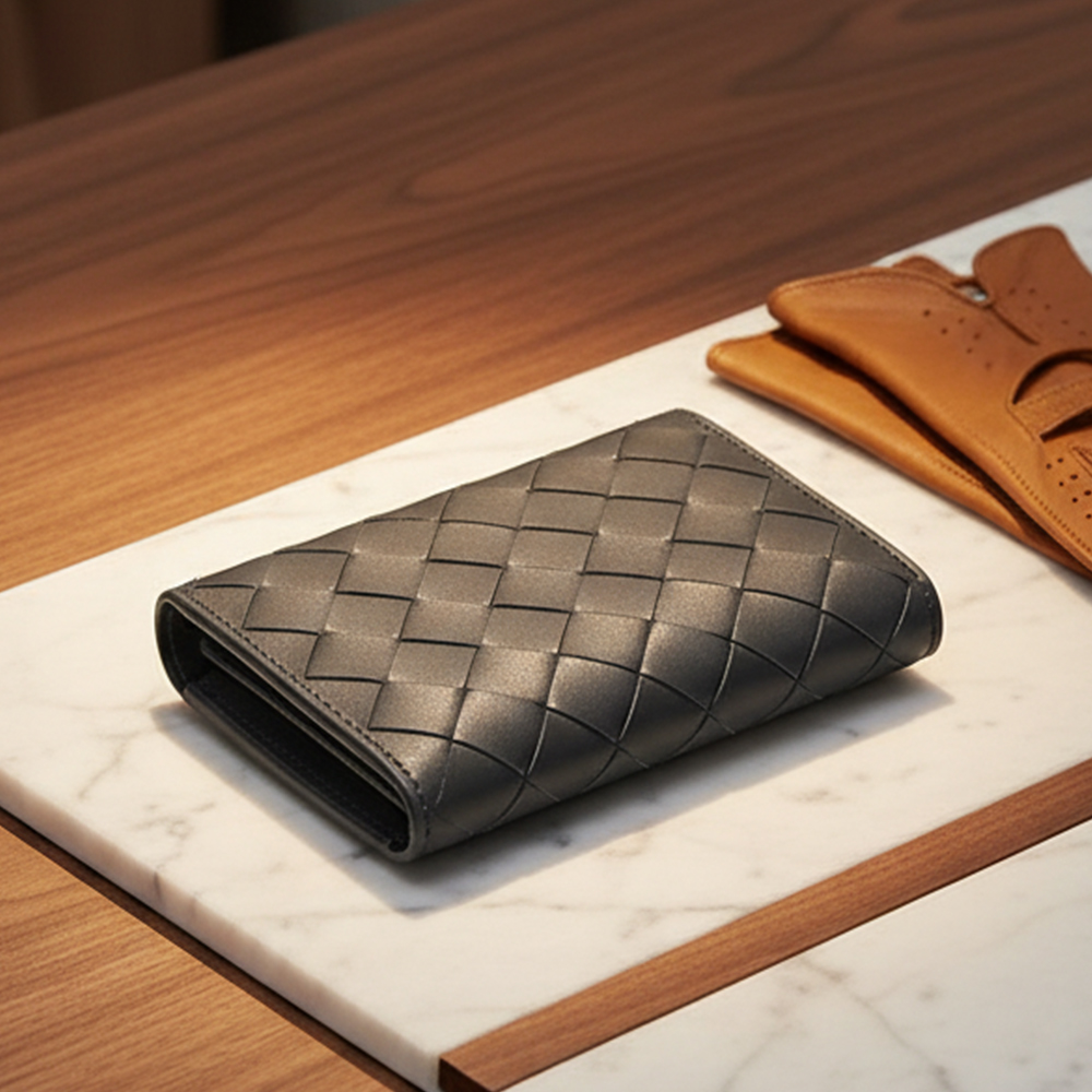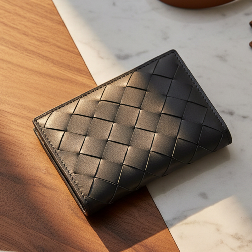 承襲品牌經典編織元素,這款真皮名片夾以手工細膩編織技法打造,展現質感與功能兼具的設計理念。