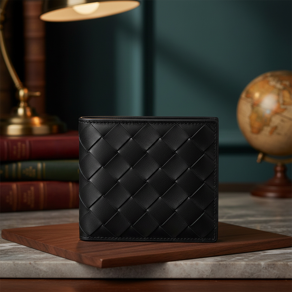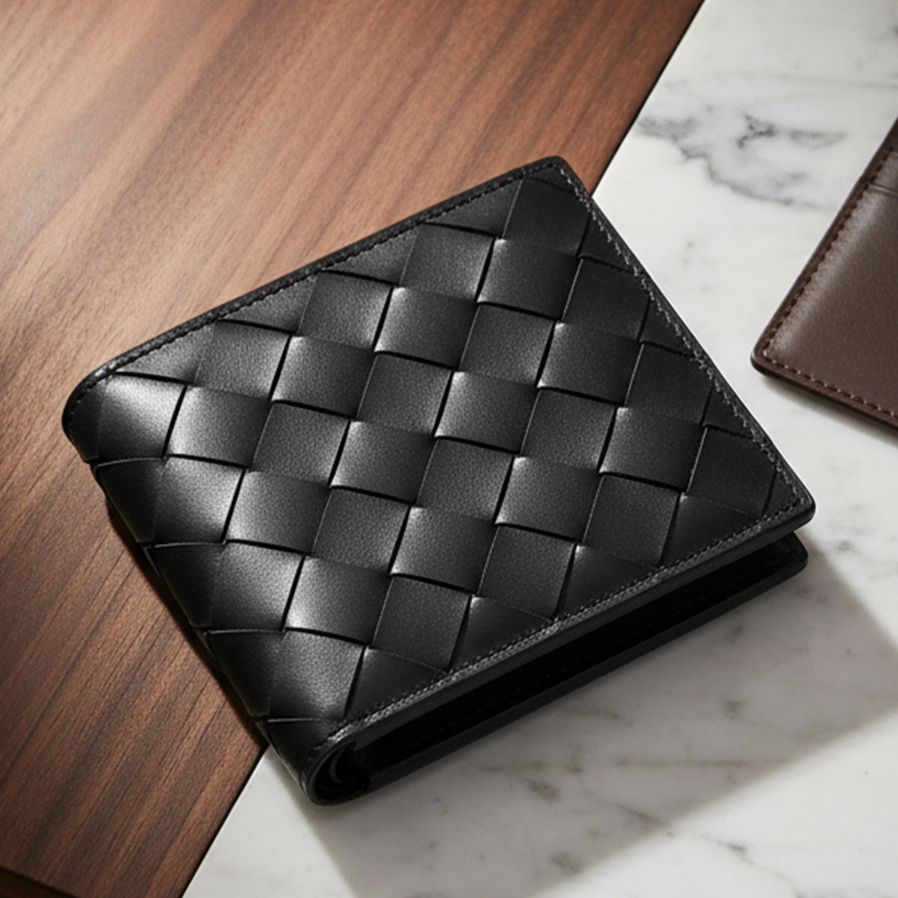 融合職人工藝與現代美學,這款真皮短夾以細緻手工編織皮革展現內斂質感,對開式設計輕巧俐落,方便攜帶。