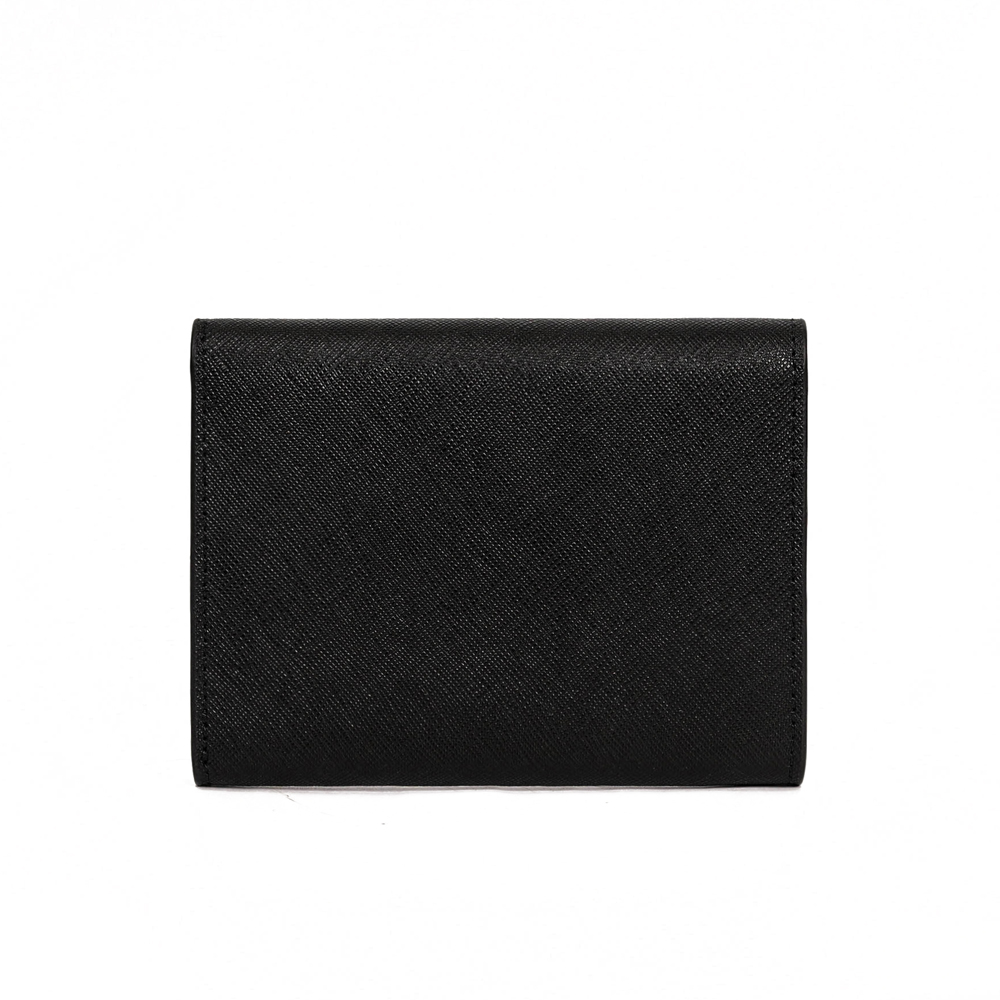 精緻商務風格的代表作,這款真皮短夾以細膩的 Saffiano 十字壓紋皮革製成,展現低調沉穩的質感魅力。