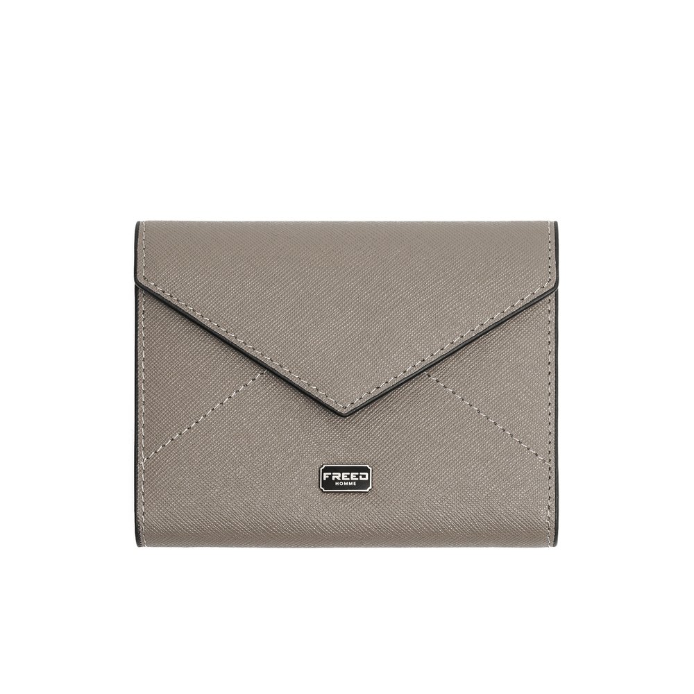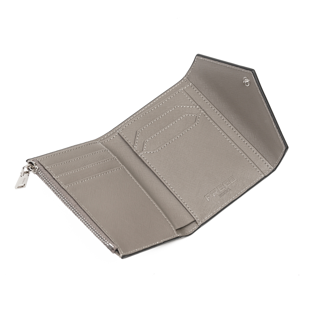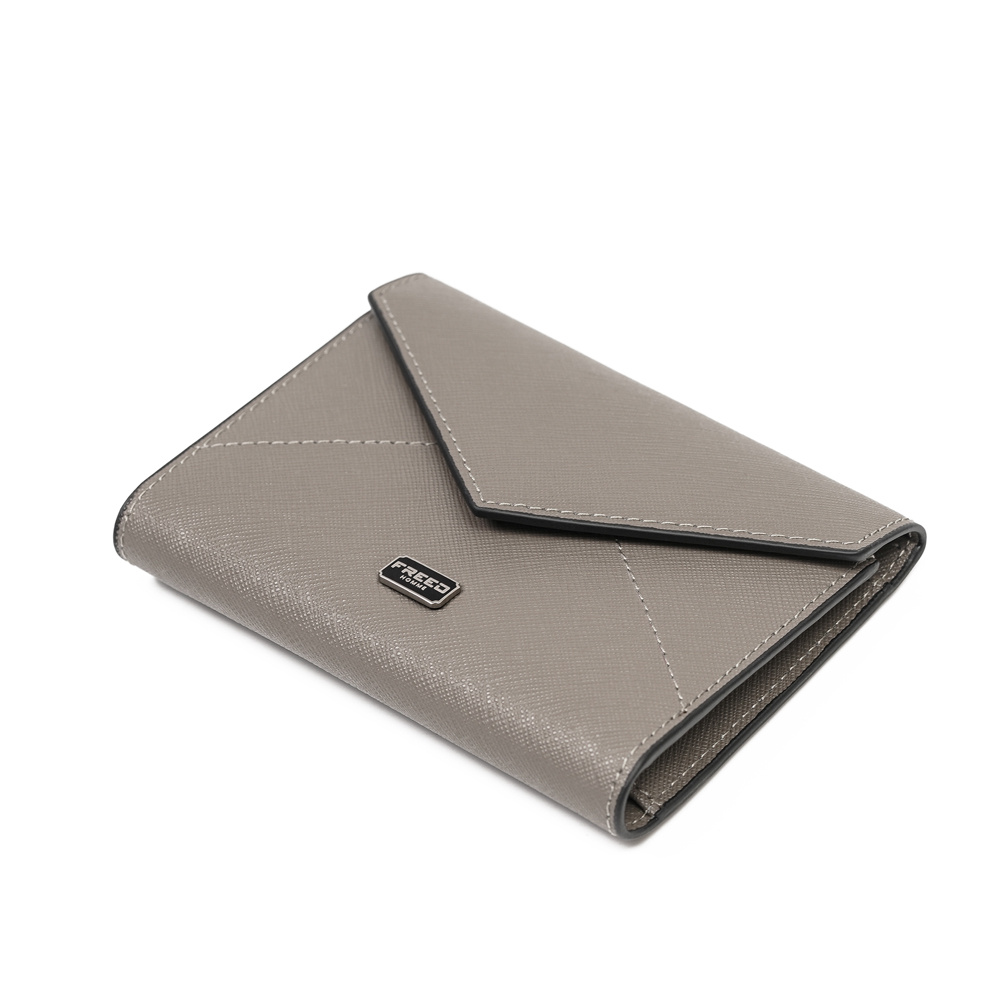 【FREED】經典 Saffiano 十字紋信封三折短夾 - 灰色