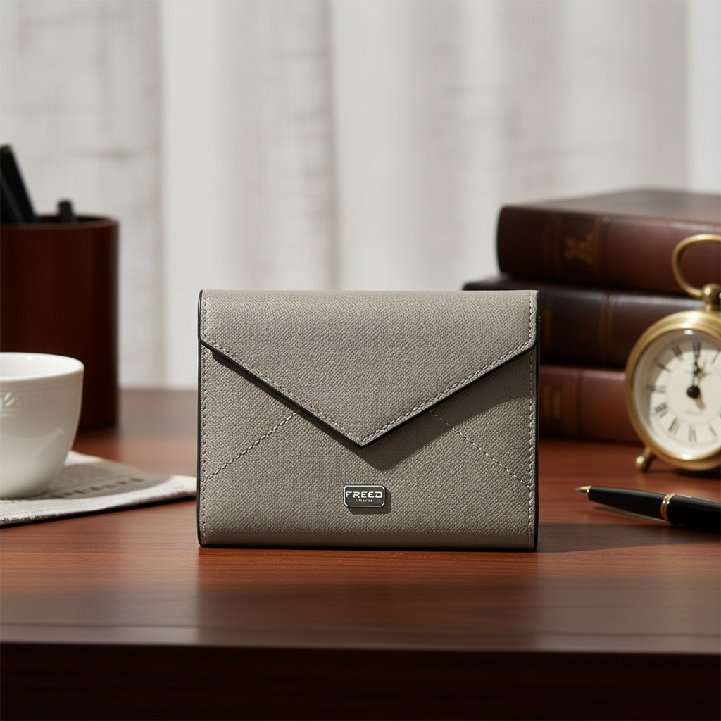 簡約俐落的信封式三折設計,完美平衡外型與收納機能,體現都會男士的專業與細節品味。