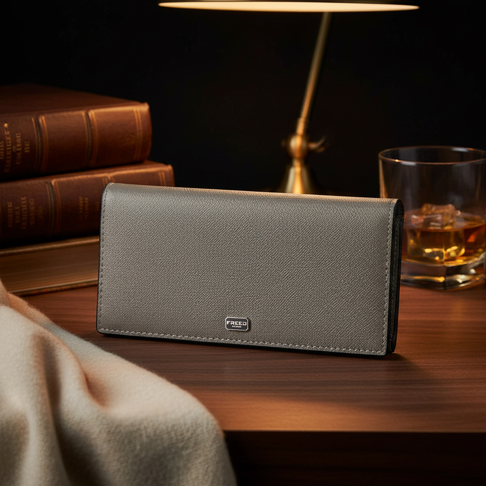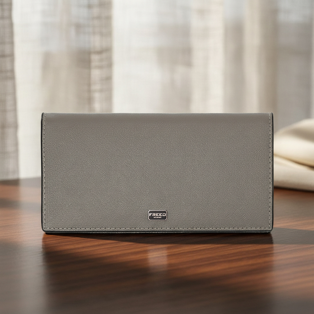 【FREED】經典 Saffiano 十字紋長夾 - 鉑金灰