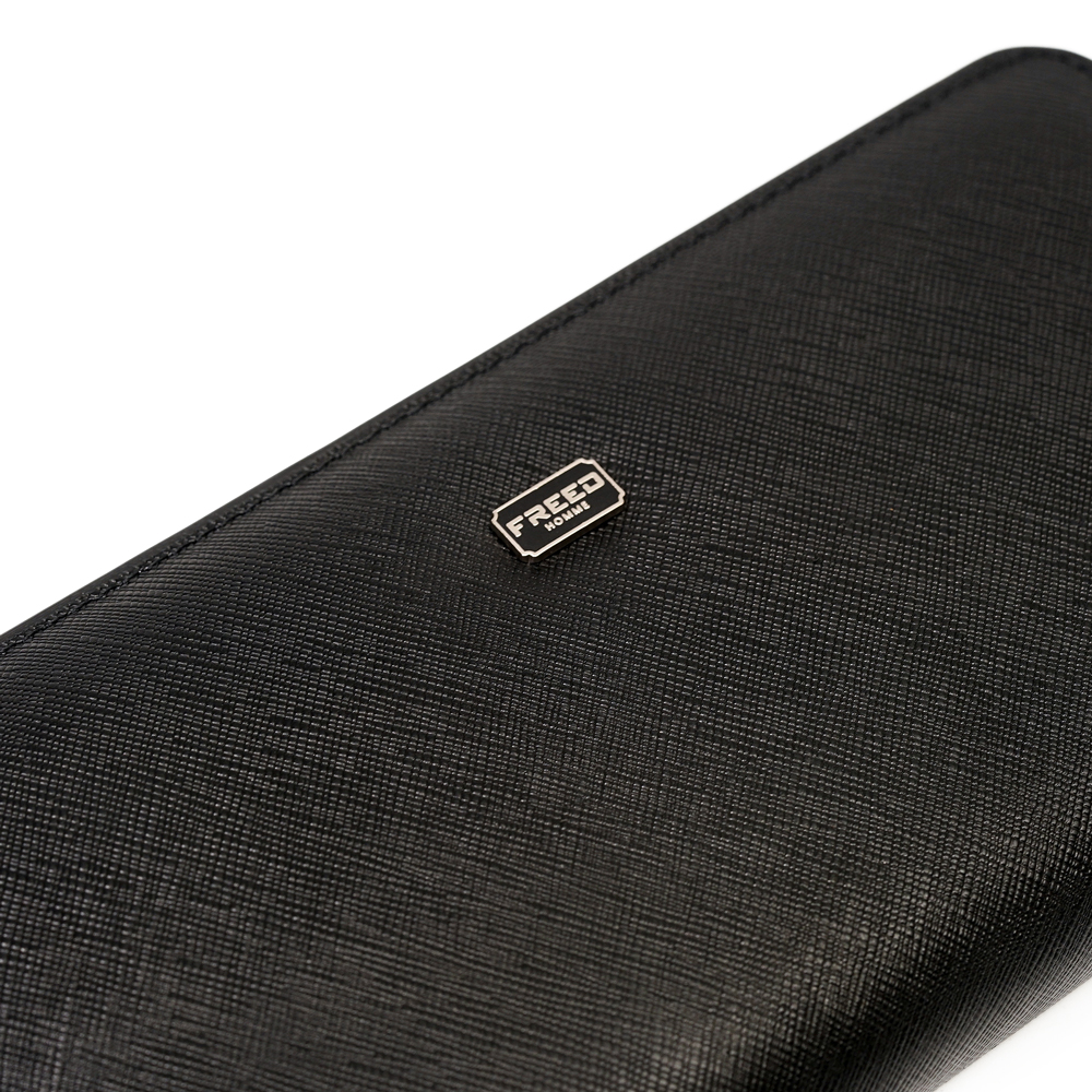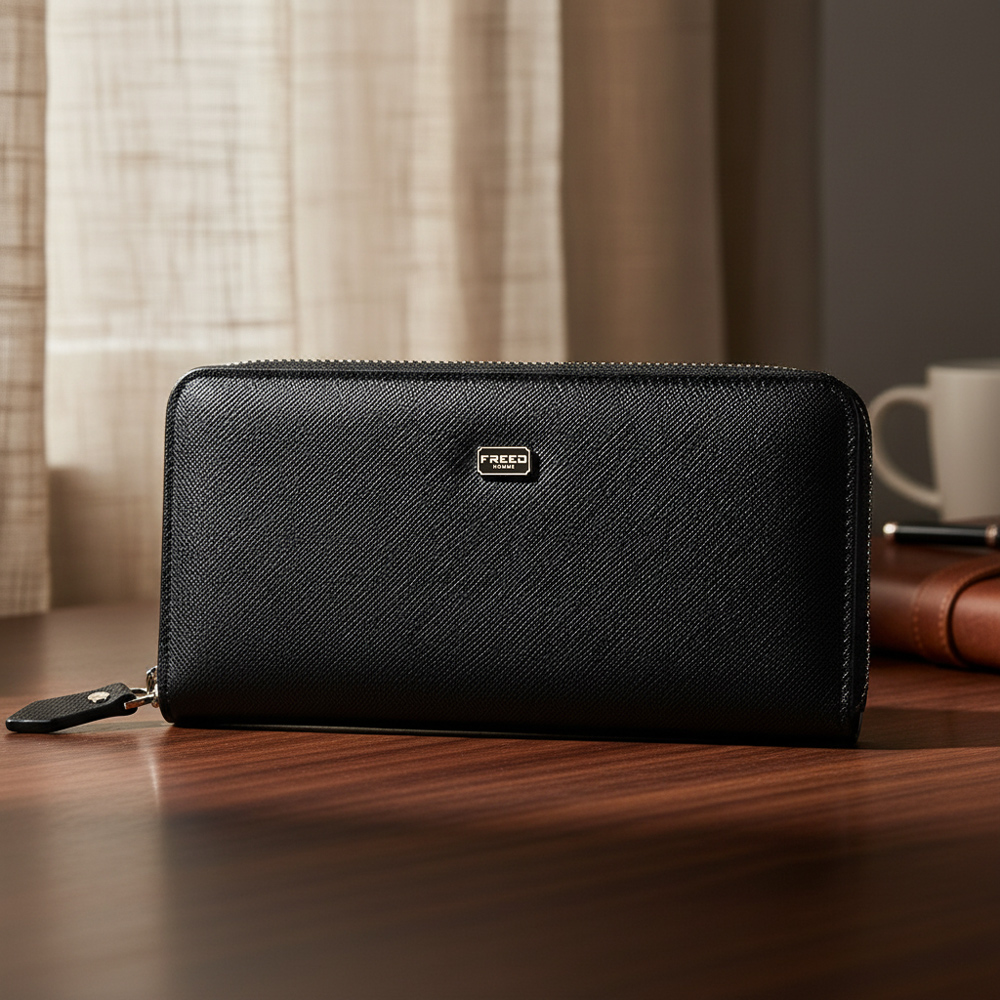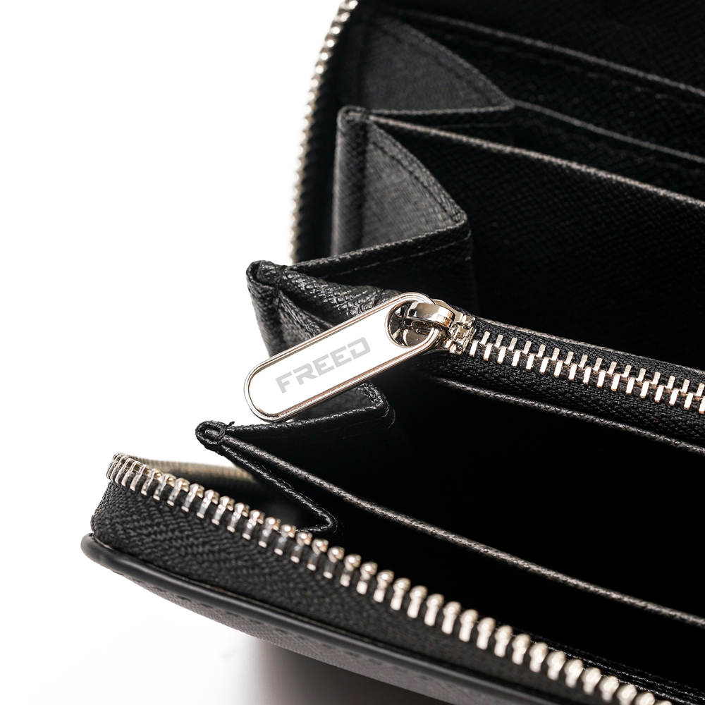 全拉鍊式的大開口設計,完美包覆內部豐富的收納隔層。無論是大量的信用卡、多國紙鈔或是細碎零錢,都能透過精細的空間規劃整齊歸位,展現您在細節處的井然有序與專業品味。
