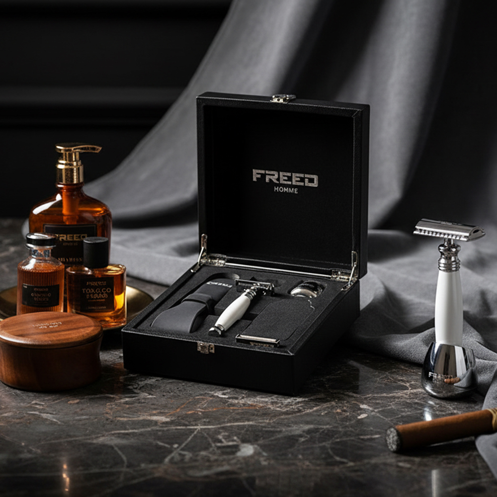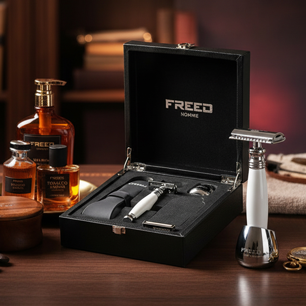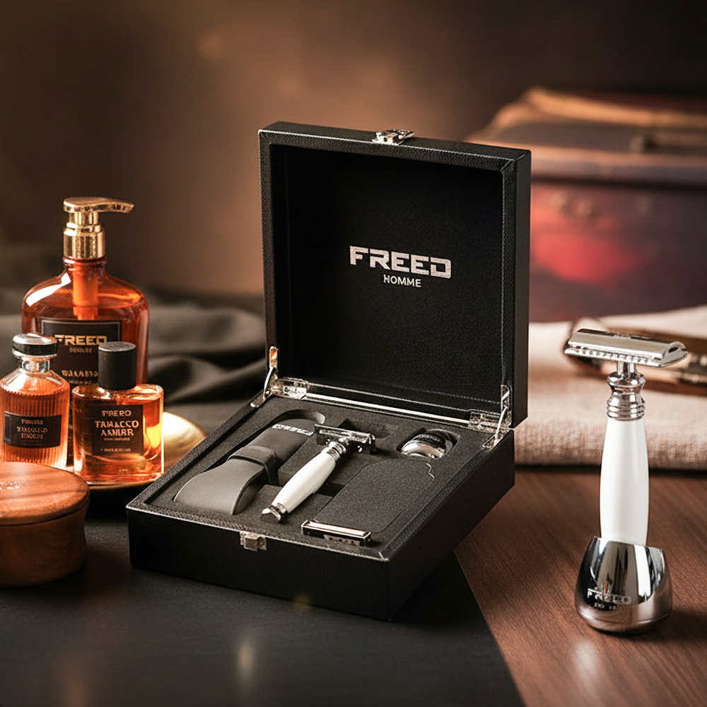 鬍前搭配 FREED 刮鬍精華露滋潤肌膚;鬍後純露鎮定保養。