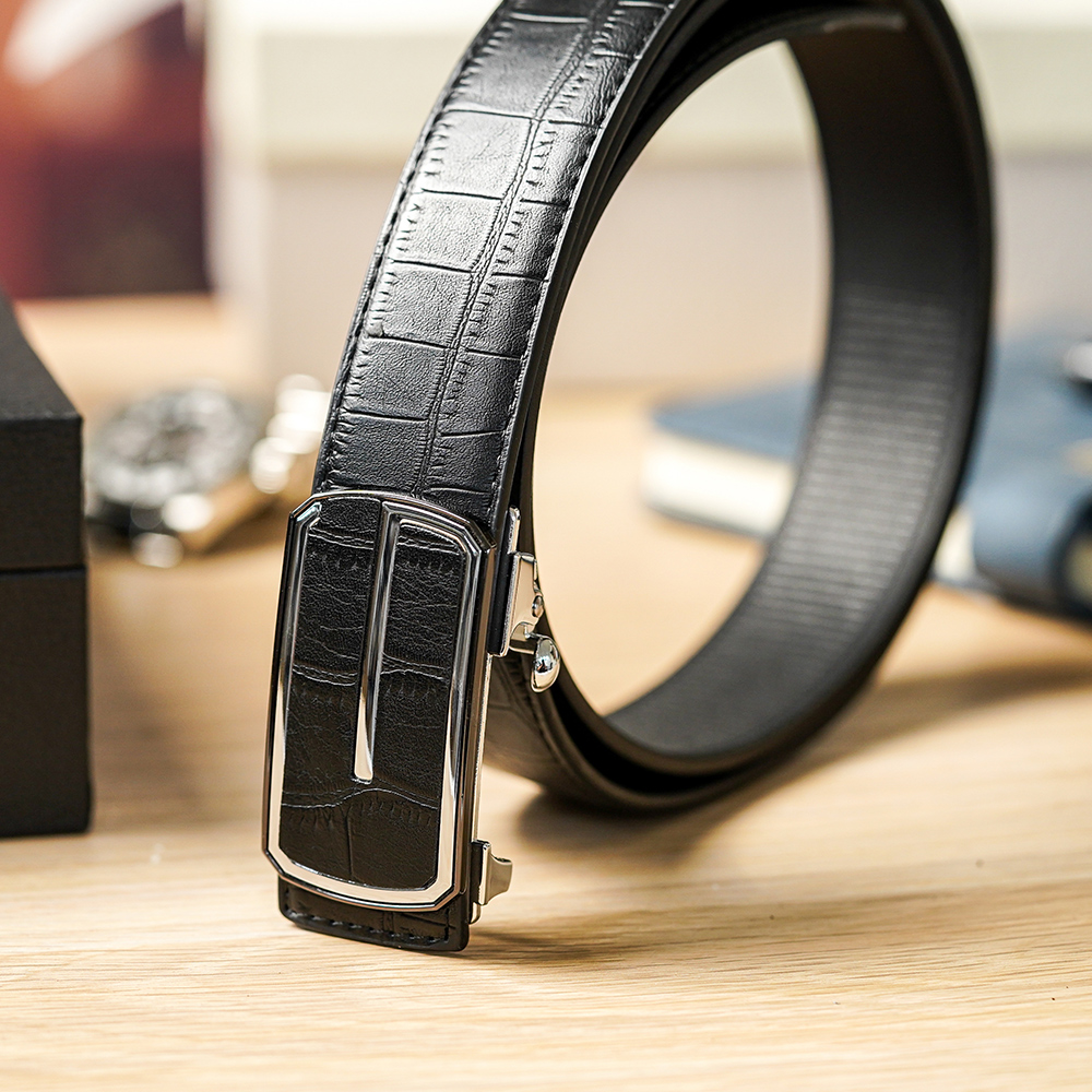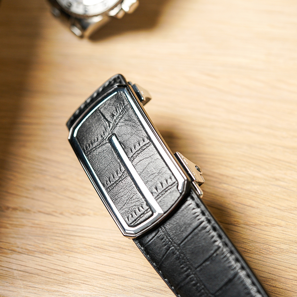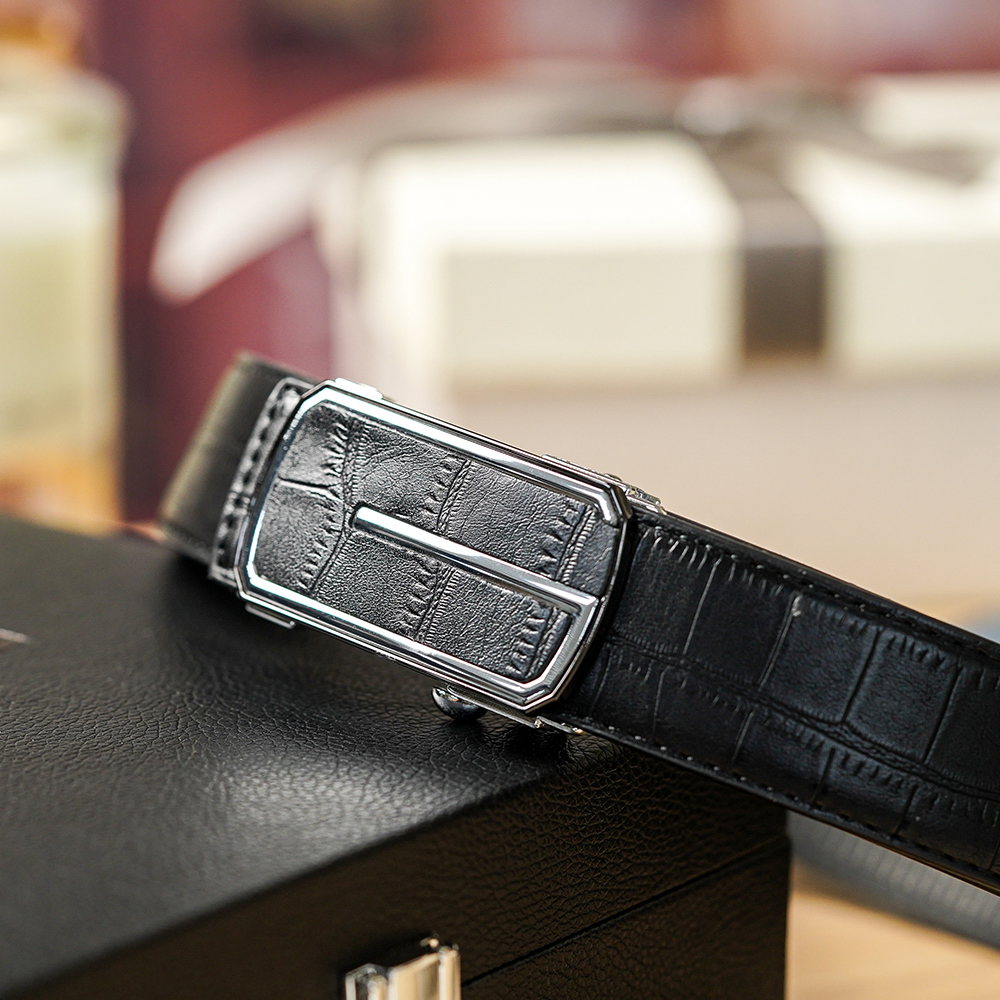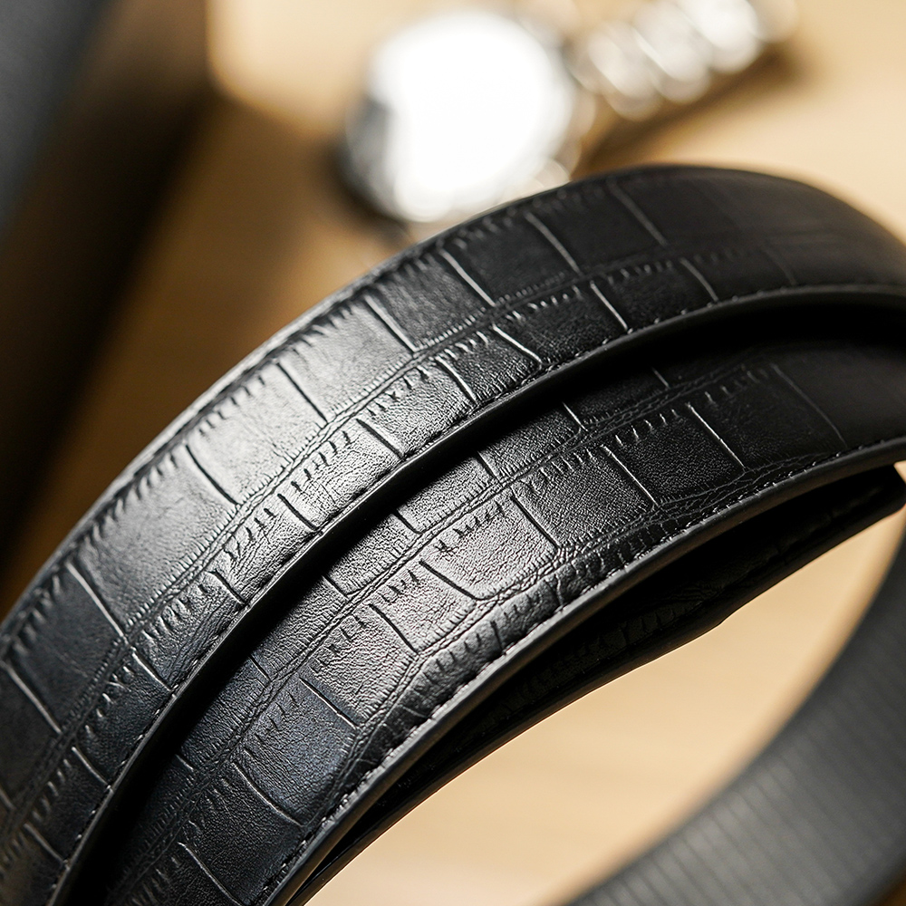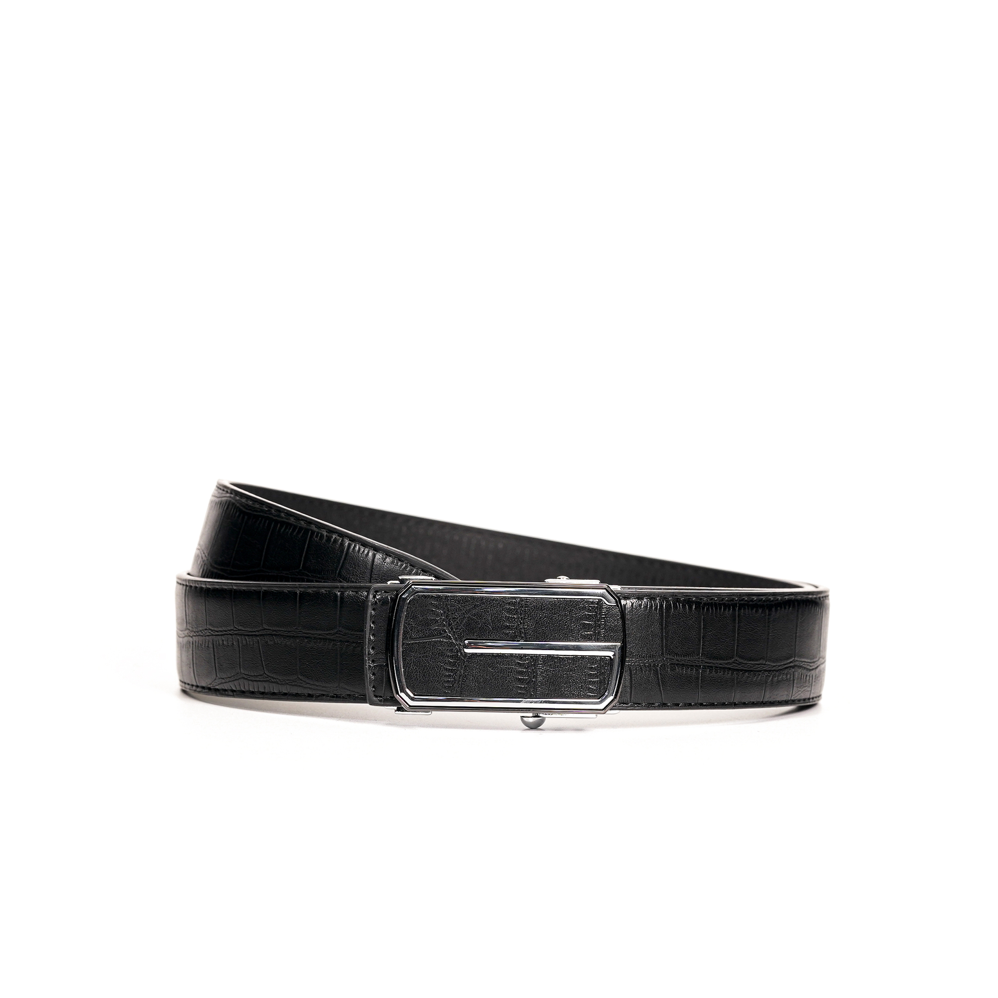 【FREED】字母造型仿鱷魚紋真皮自動皮帶 - 黑銀