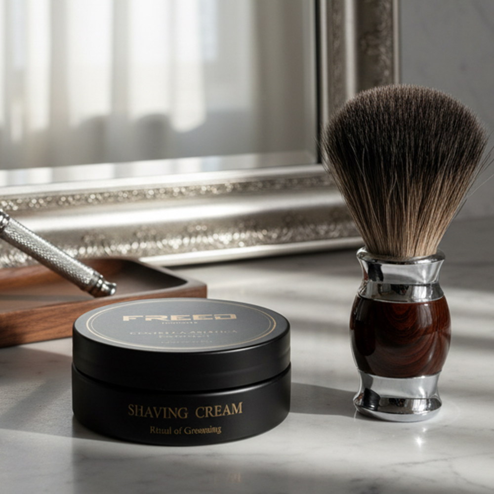 從刷尖沾水、起泡、覆面,到刮後肌膚留下的柔和膚觸,整體不只是刮鬍,更像一場帶有茶韻的修容程序。