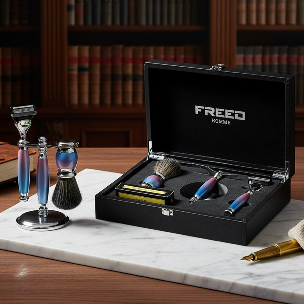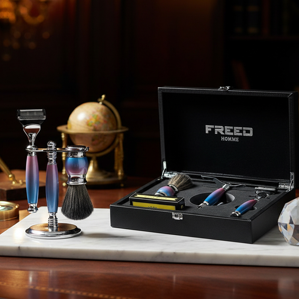 鬍前搭配 FREED 刮鬍精華露滋潤肌膚;鬍後純露鎮定保養。