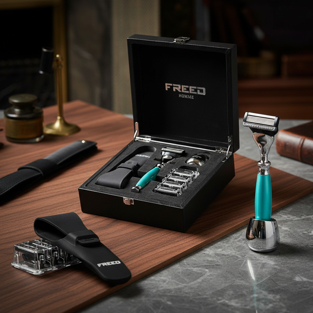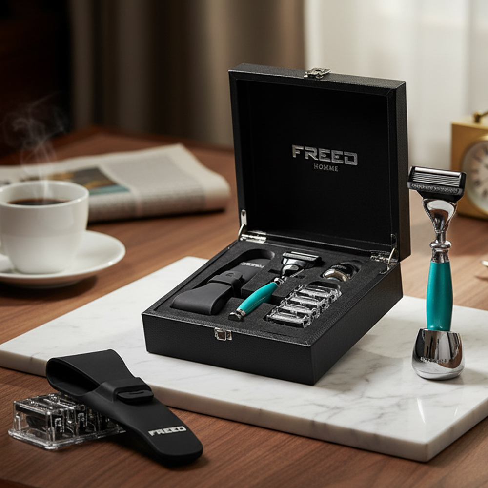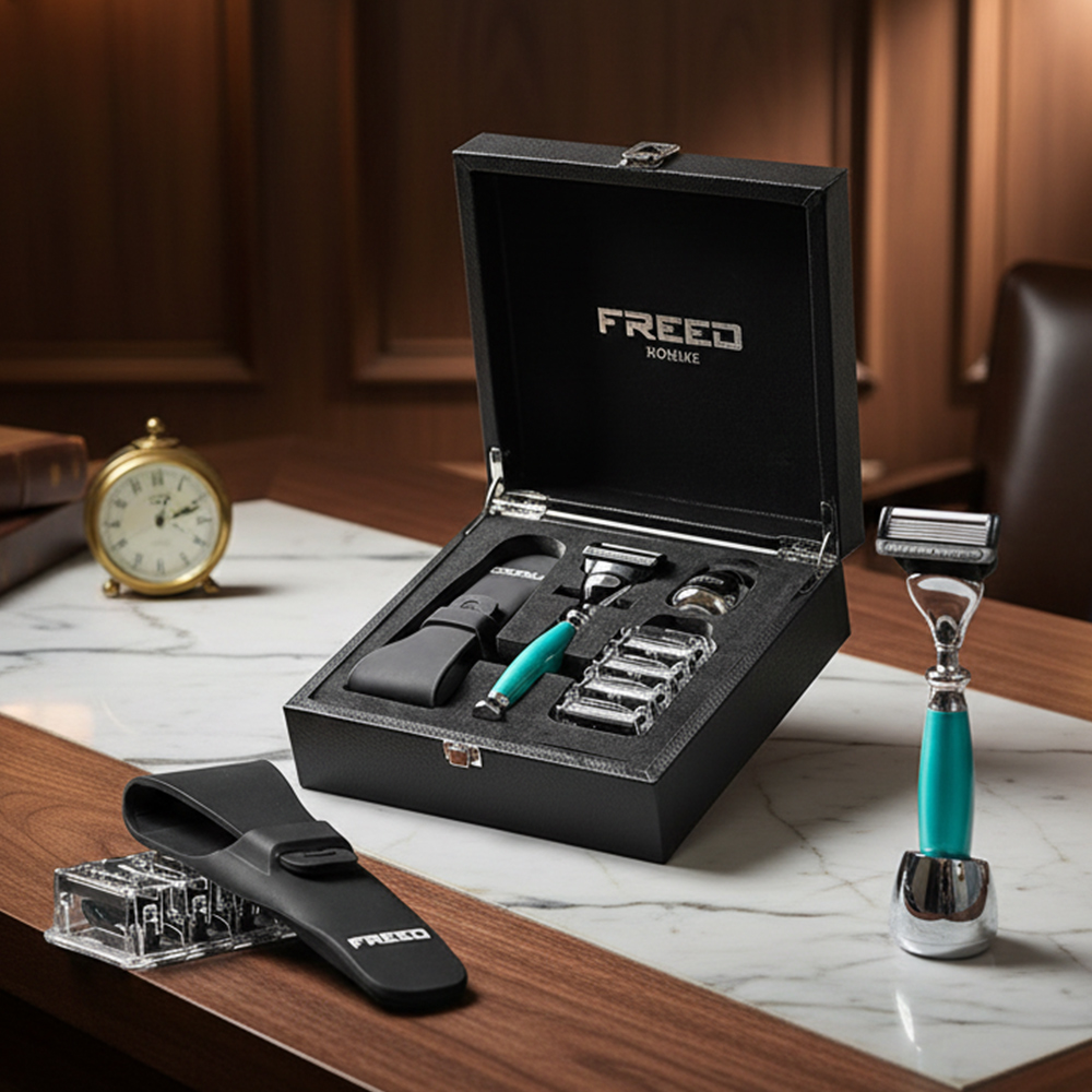 鬍前搭配 FREED 刮鬍精華露滋潤肌膚;鬍後純露鎮定保養。