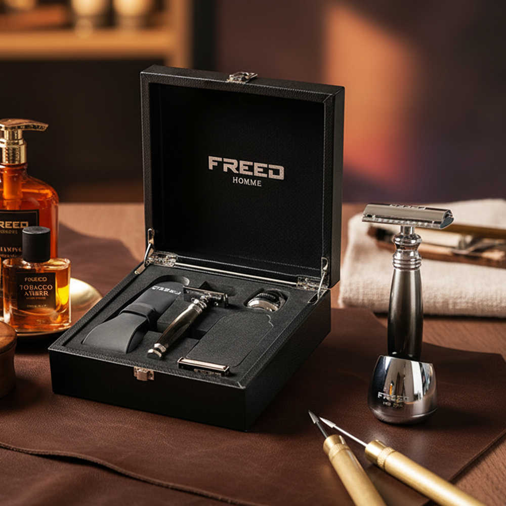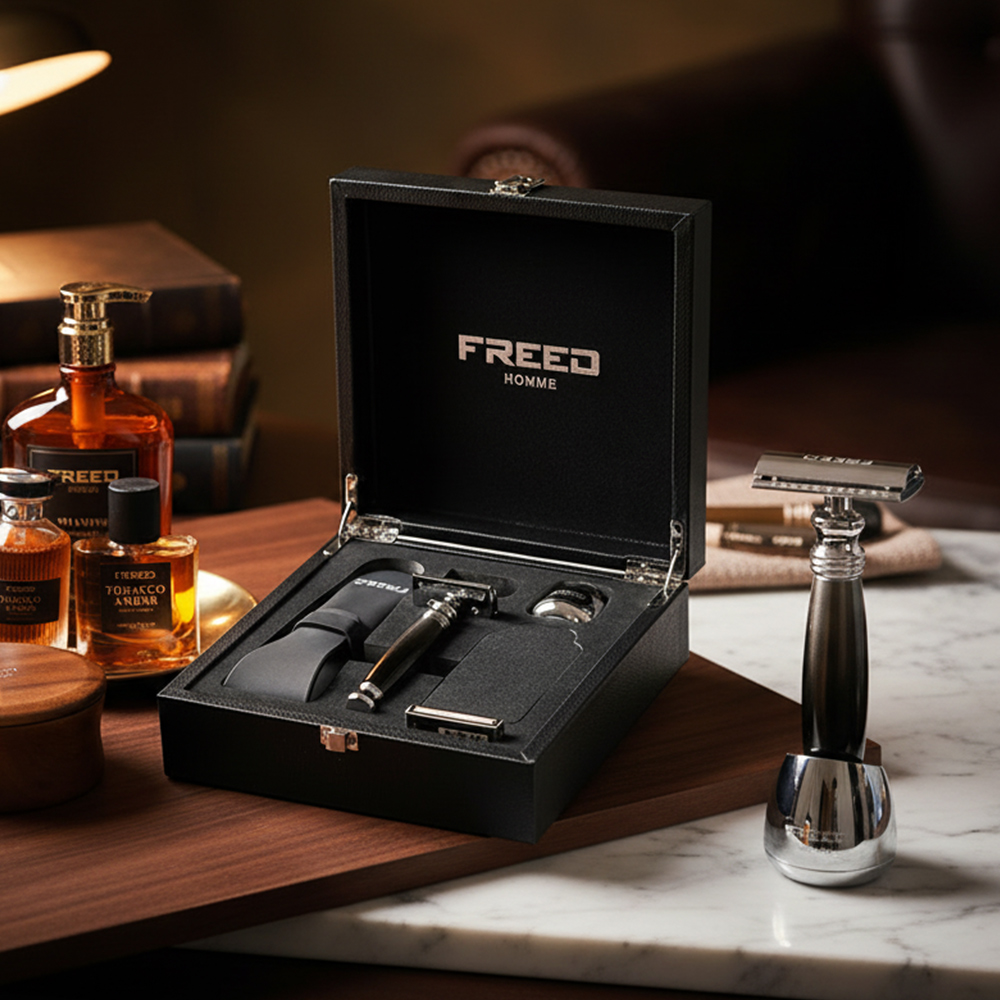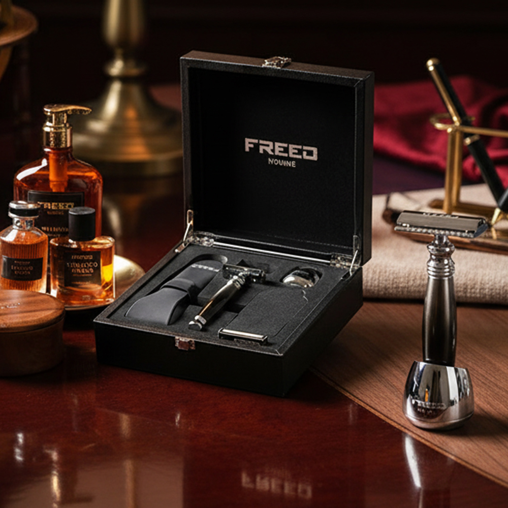 鬍前搭配 FREED 刮鬍精華露滋潤肌膚;鬍後純露鎮定保養。