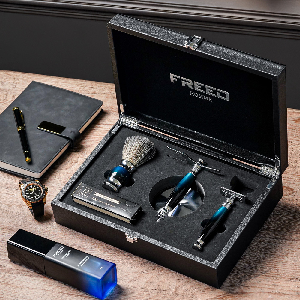 刀片採用日本鋼材製作而成,堅韌且鋒利的刀片使得刮鬍非常的輕鬆俐落,搭配安全裝置完美服貼肌膚角度讓刮鬍過程大幅降低受傷與鬍子拉扯的機率,全金屬材質刀身,完美的重量配比,手感操控性極佳,讓男人專屬的儀式感為您開啟每一天。