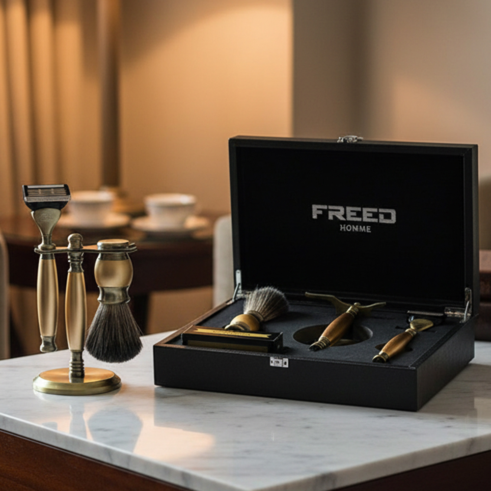 採用豪華車品牌鍍鉻工藝與鋁合金材質,完美呈現男人品味的刀具,刀片採用歐洲鋼材製作而成,堅韌且鋒利的刀片使得刮鬍非常的輕鬆俐落,搭配安全裝置完美服貼肌膚角度讓刮鬍過程大幅降低受傷與鬍子拉扯的機率,全金屬材質刀身,完美的重量配比,手感操控性極佳,讓男人專屬的儀式感為您開啟每一天